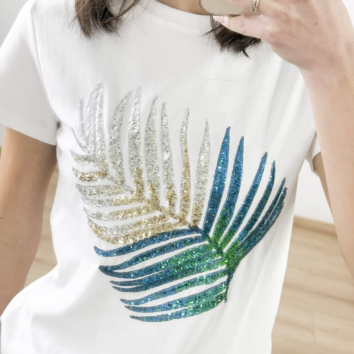 Tropical Glam Sequin Palm T-Shirt