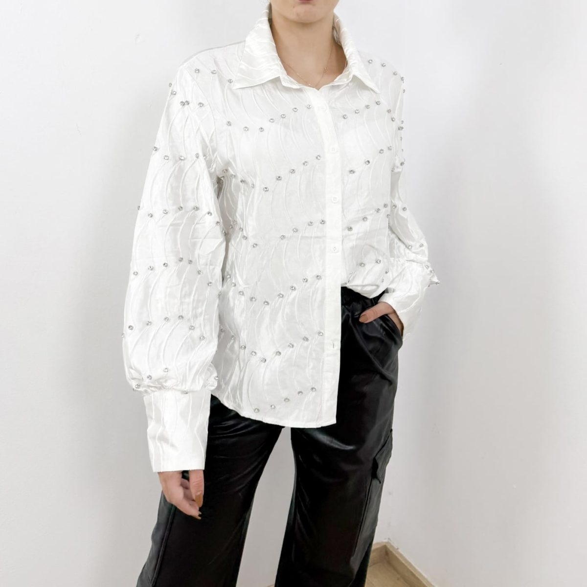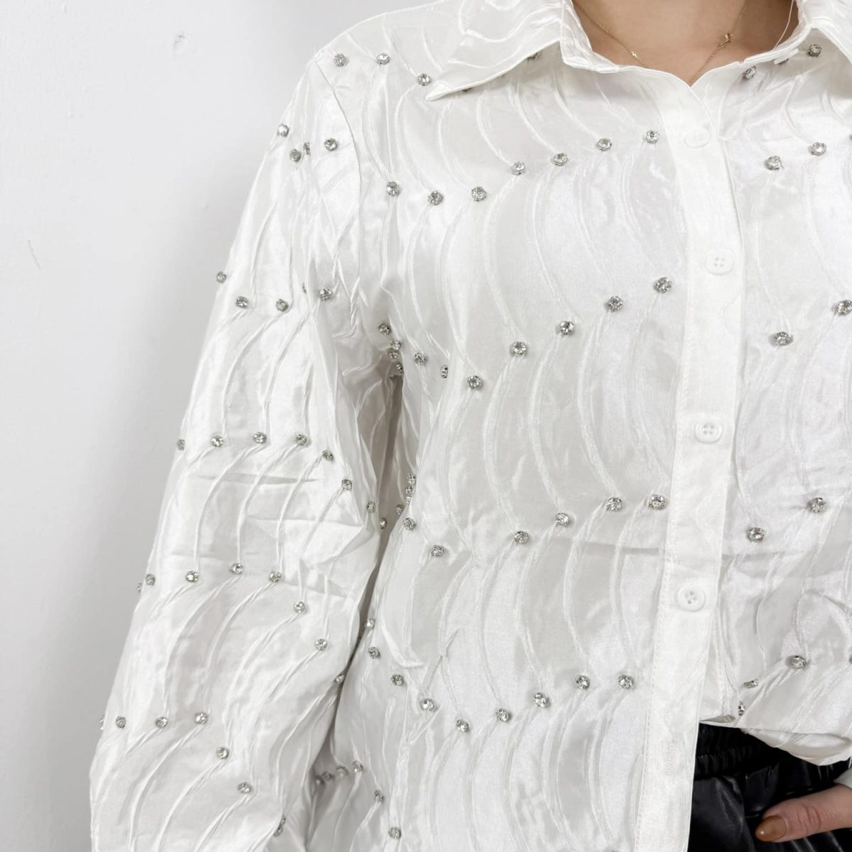 Elevate your wardrobe with our Satin Shirt, a stunning blend of elegance, modernity, and refined detail. Crafted from smooth satin fabric with a soft sheen, this satin shirt is adorned with delicate crystal embellishments that add a touch of glamour to your everyday or evening look.