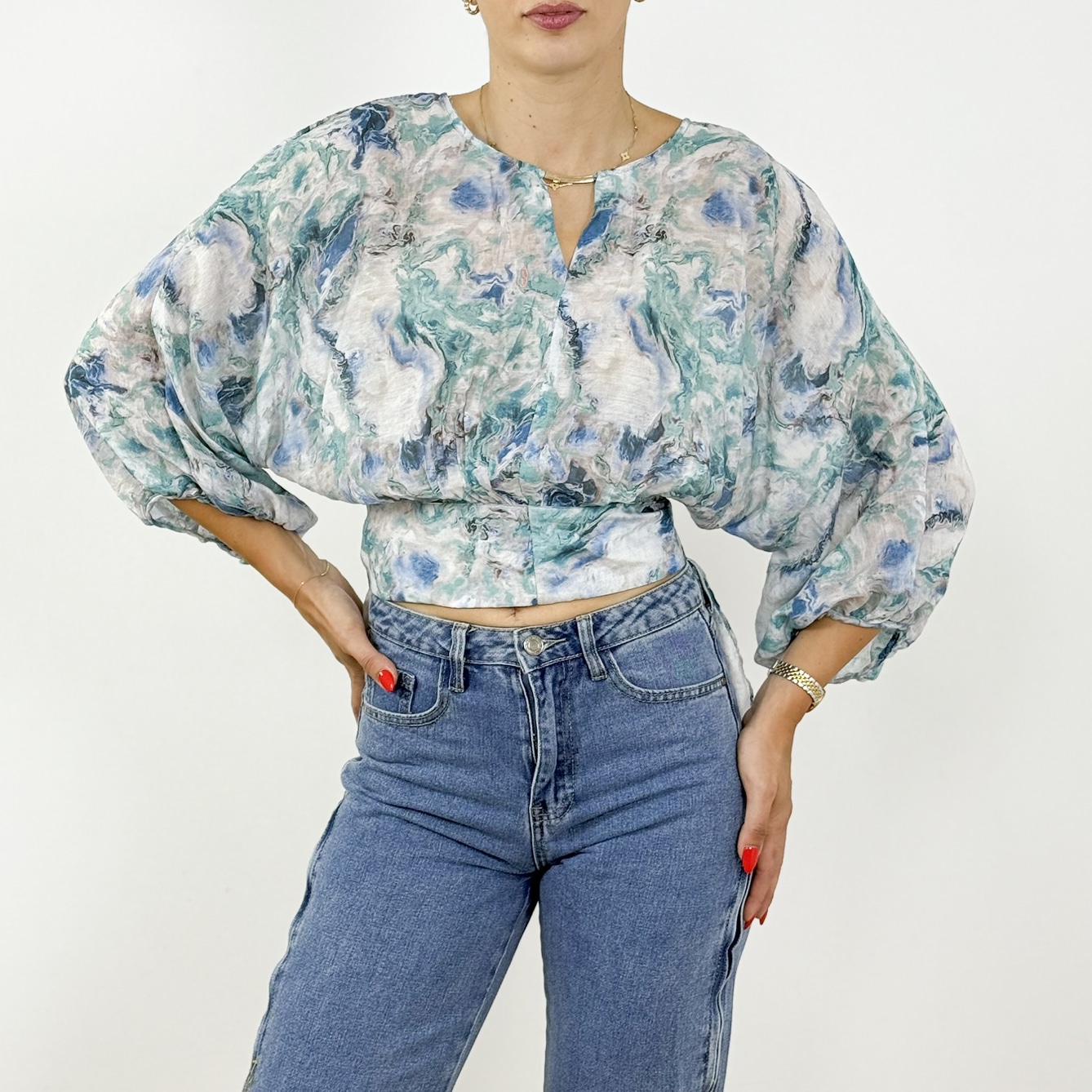 Lace Trim Button-Up Blouse