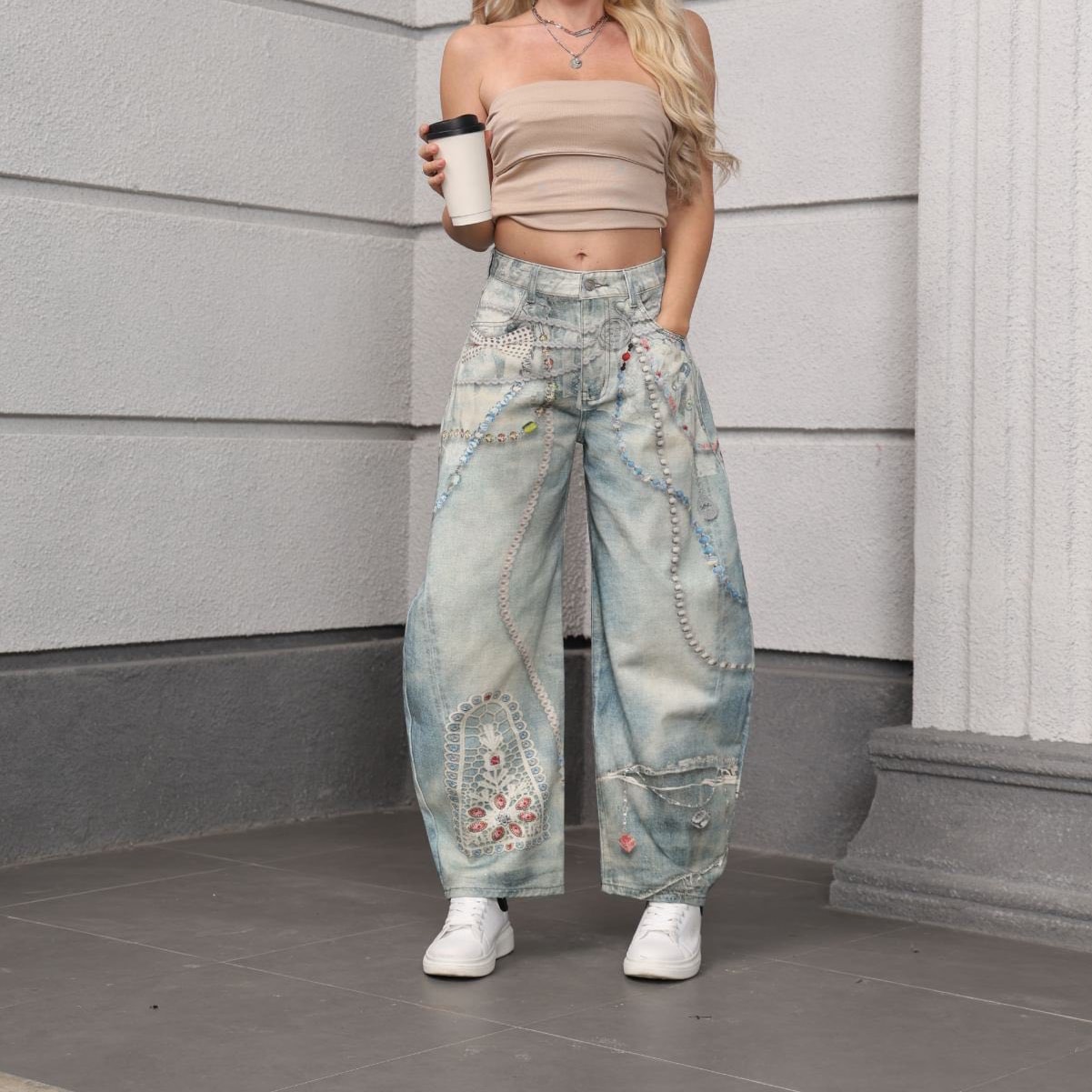 Sunbeam Contrast Panel Wide-Leg Jeans