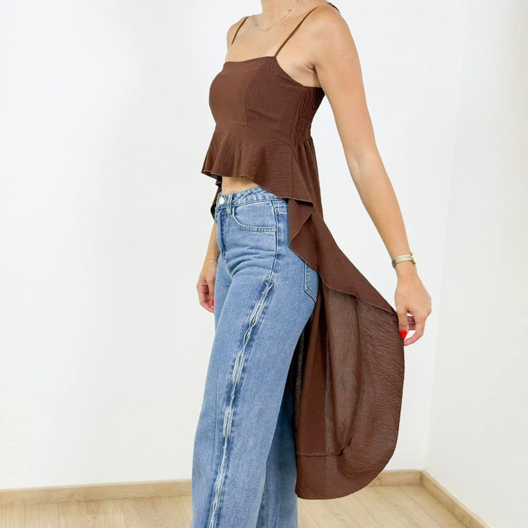 Metallic Print Cut-Out Skirt Set with Chain Straps