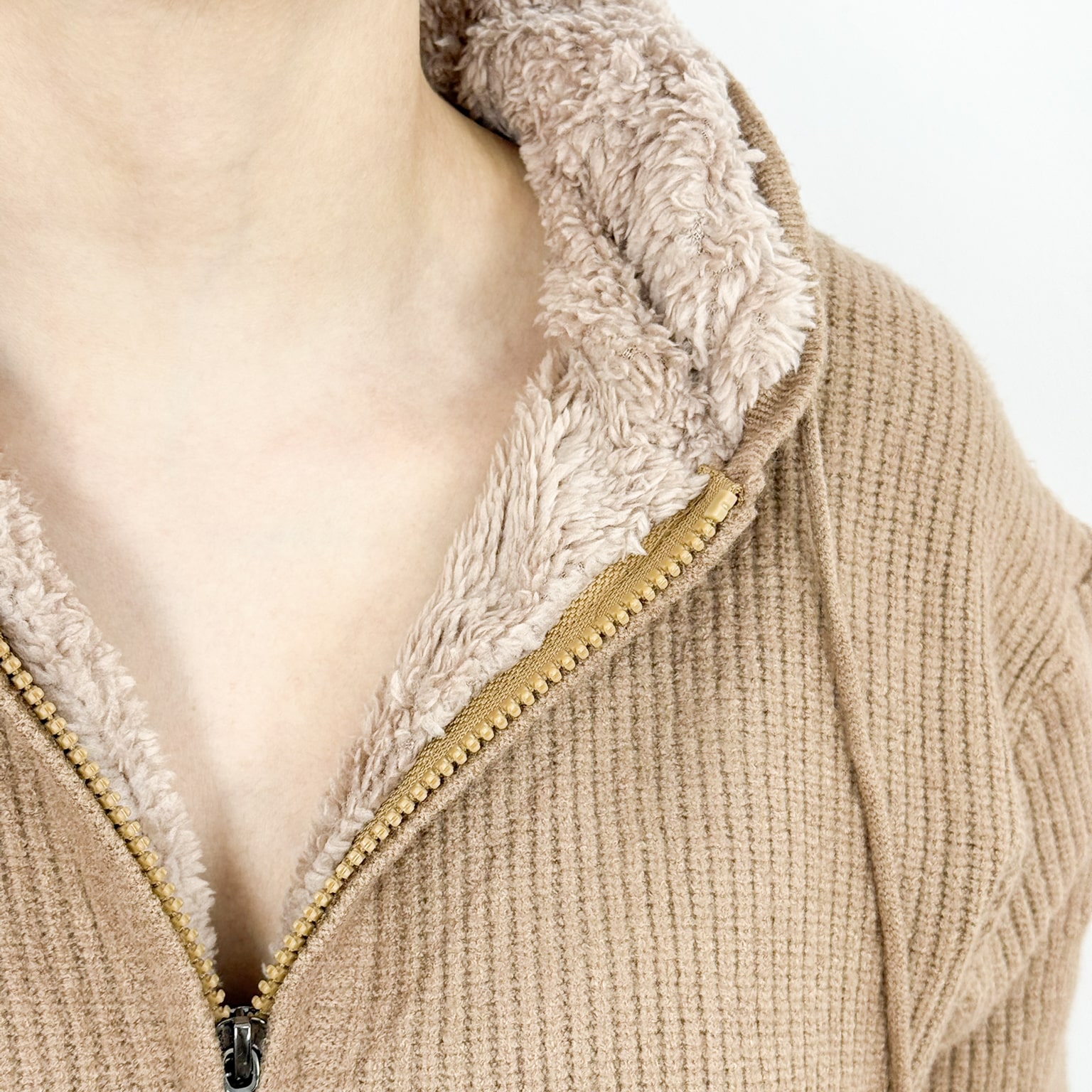 Sherpa Lined Zip-Up Knit HoodieG