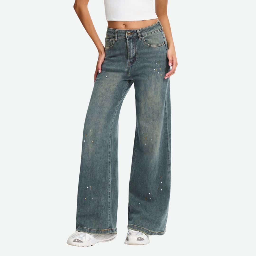 Vintage Paint-Splatter Wide-Leg Denim Jean