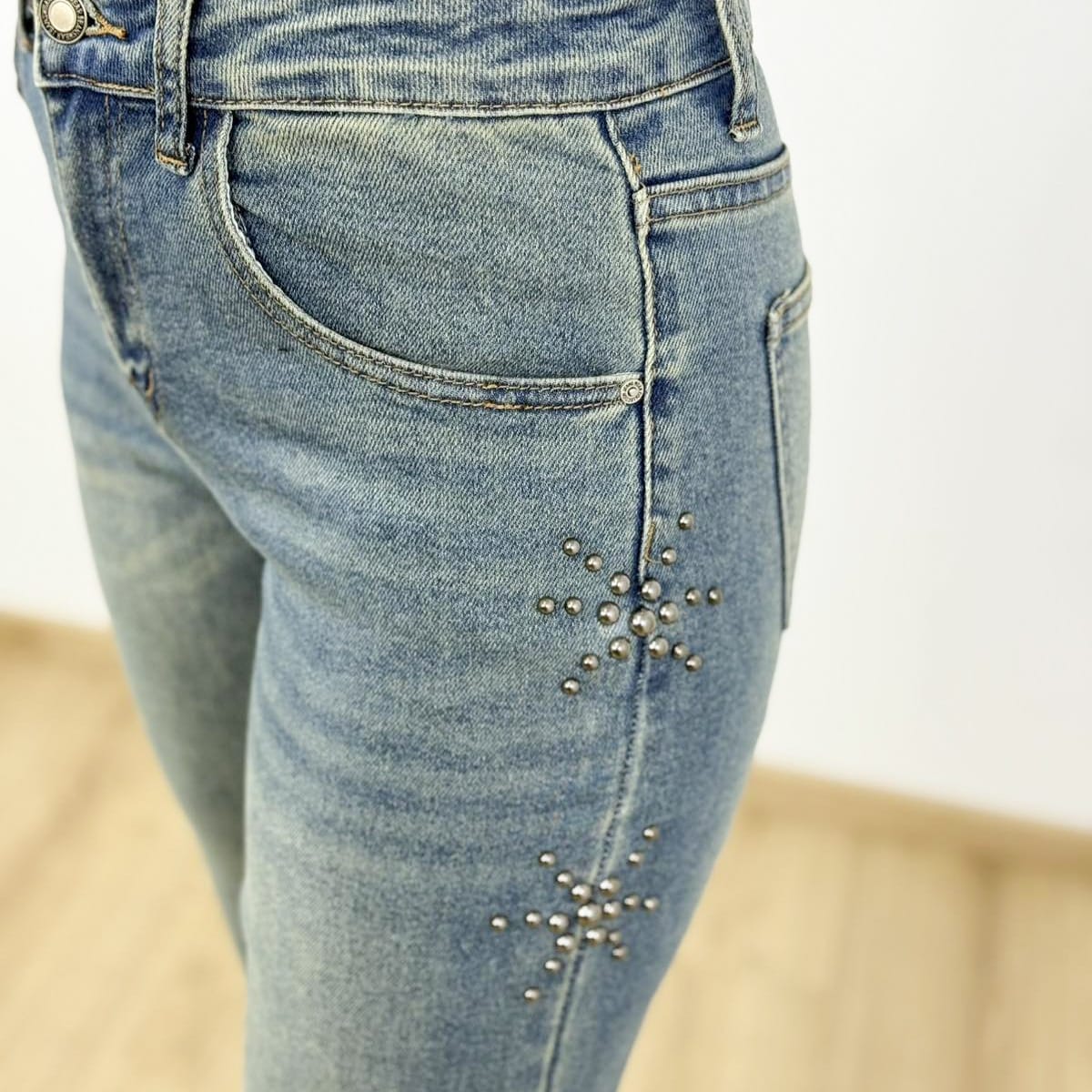 Stellar Stud Straight-Leg JeansG