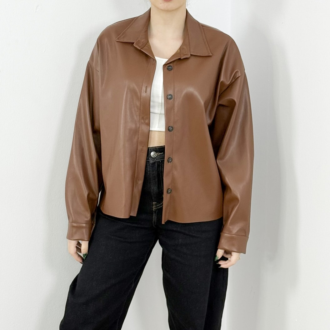 Luxe Faux Leather Button-Down Shirt JacketG