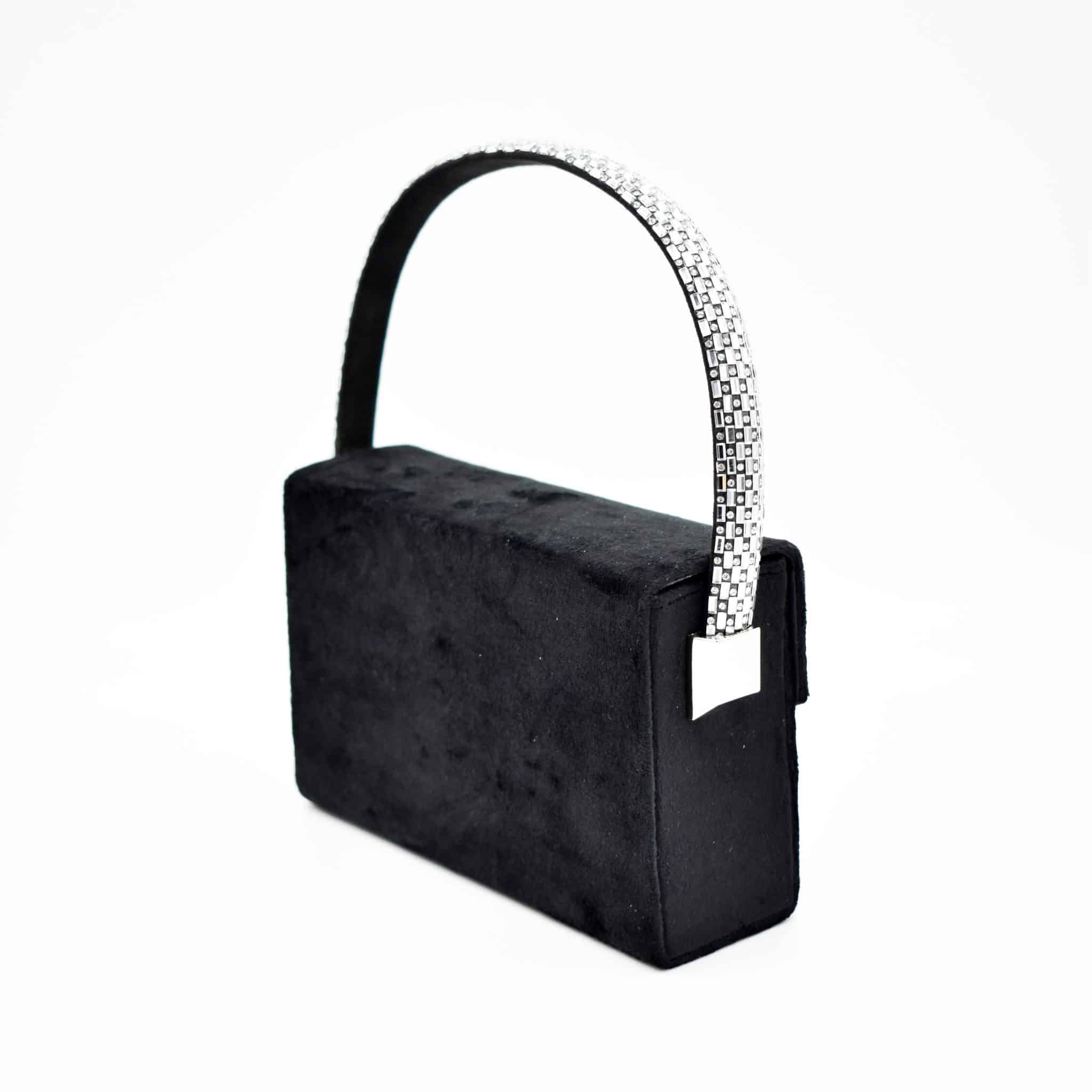 Elevate your evening style with this Black Velvet Box Clutch featuring a dazzling crystal-embellished handle. Its structured silhouette, soft velvet texture, and sparkling top handle create the perfect balance between elegance and modern glamour. Ideal for weddings, parties, formal dinners, and special events, this clutch is designed to steal the spotlight while carrying your essentials with sophistication.