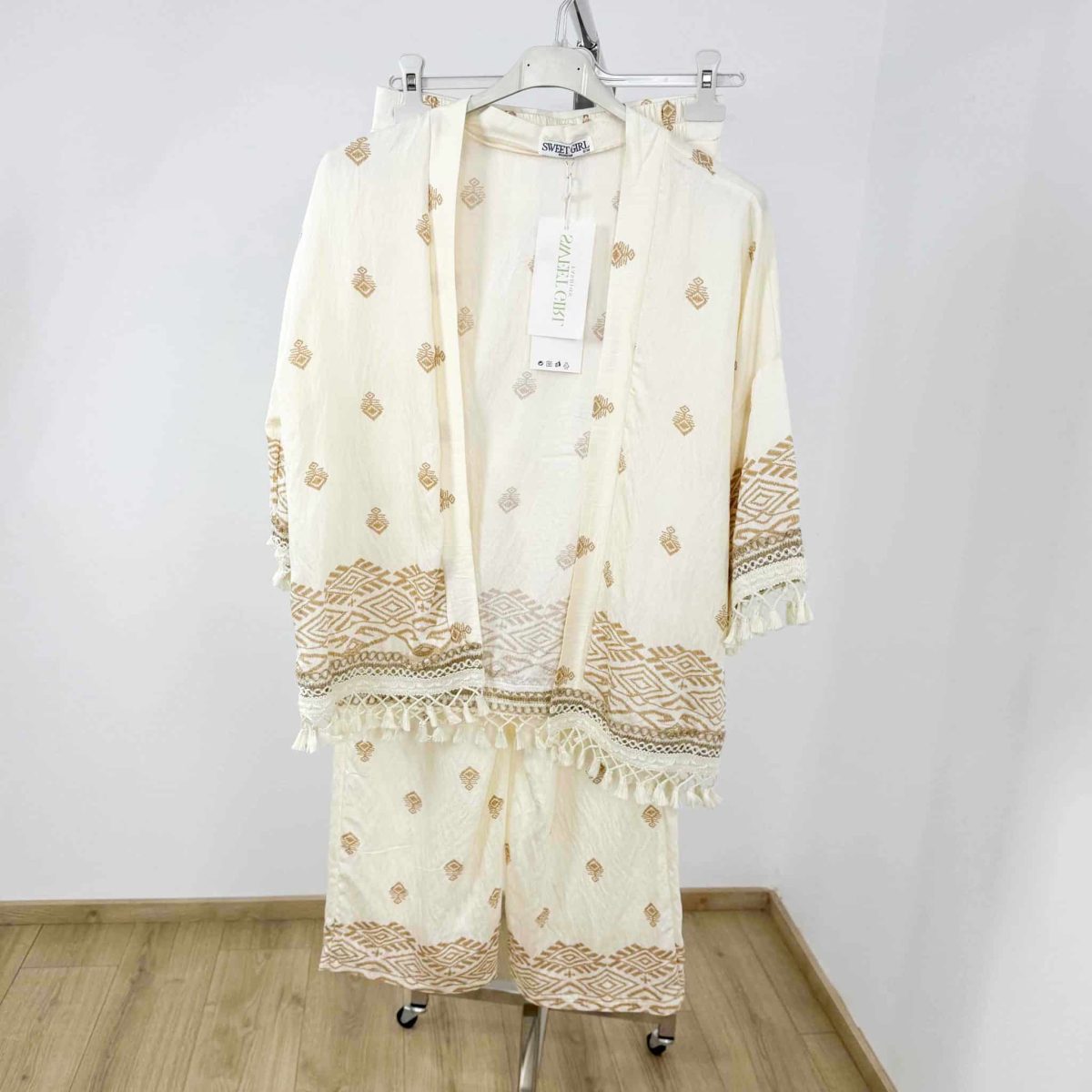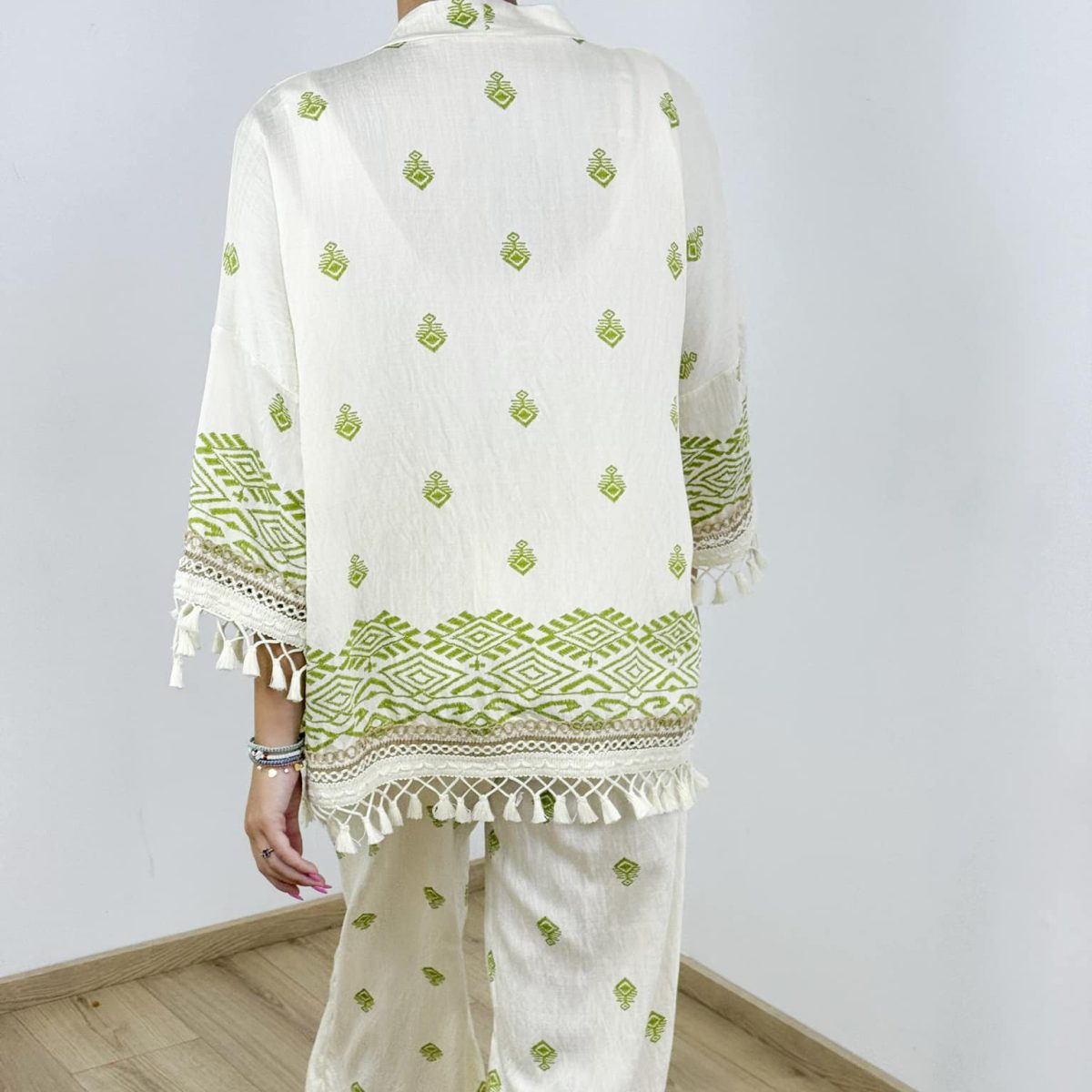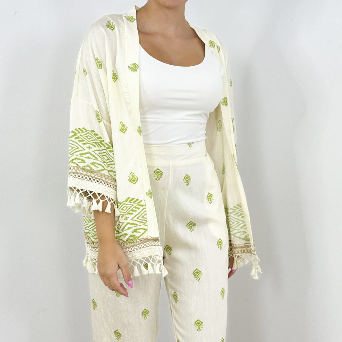 ✔ Kimono-style top with embroidery & tassel details