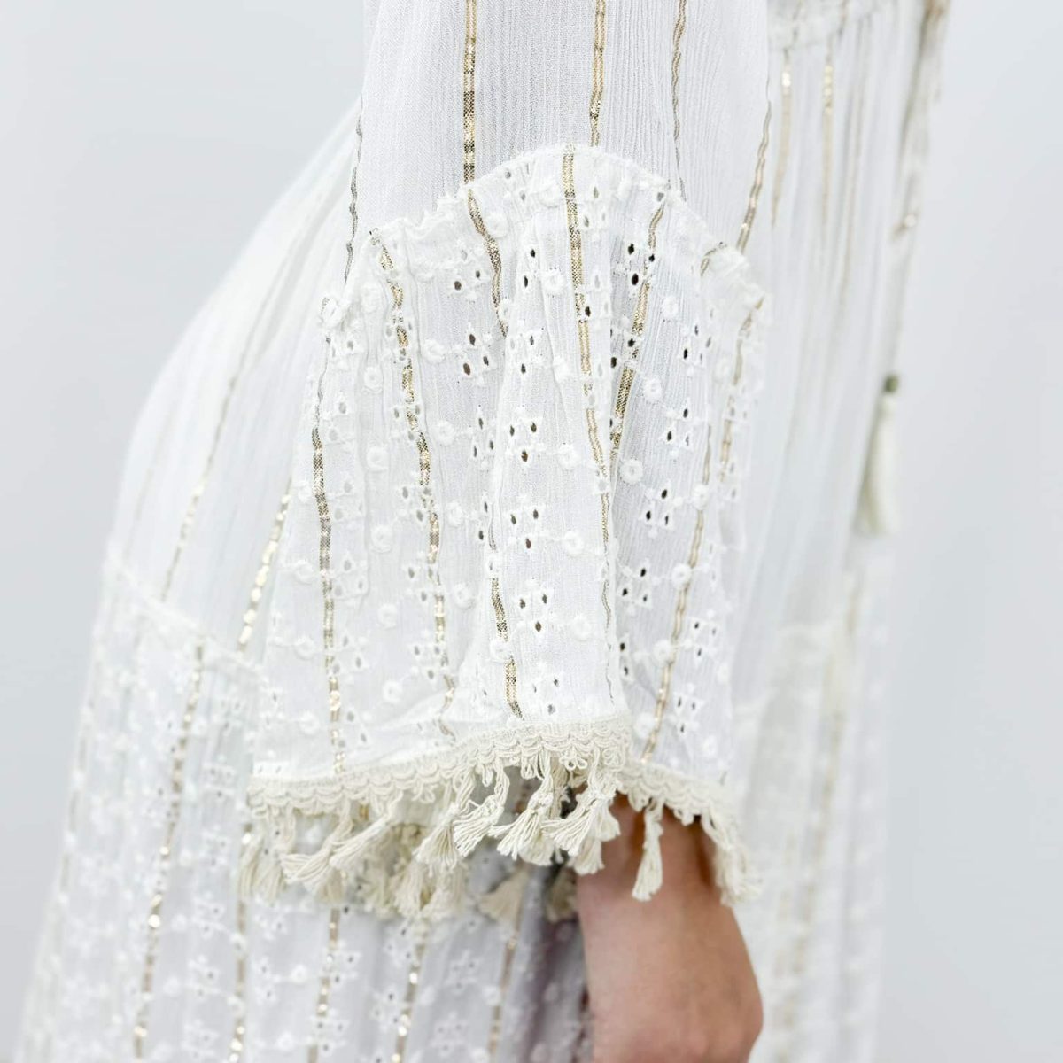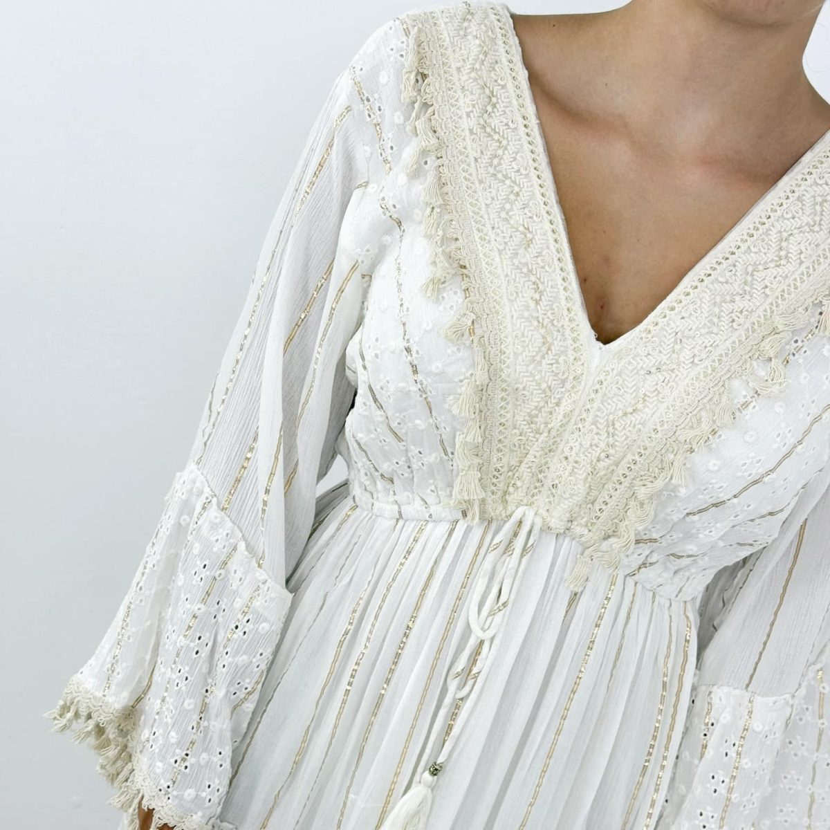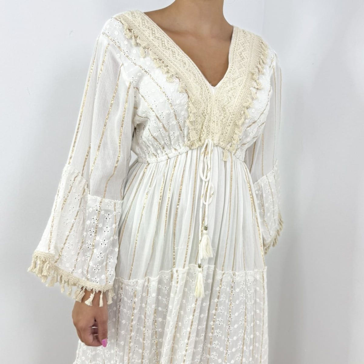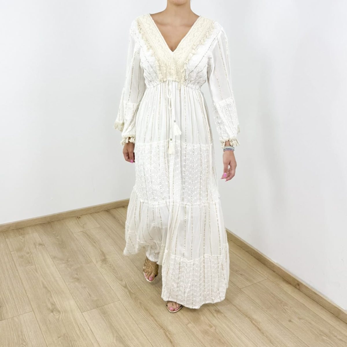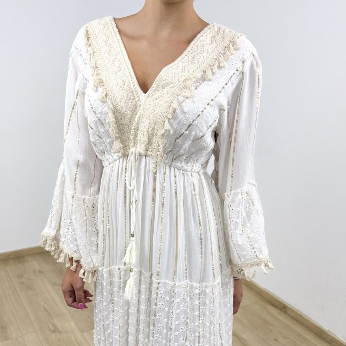 Step into effortless elegance with this boho-inspired lace maxi dress, designed for women who love a blend of romance and comfort. Perfect for summer strolls, beachside dinners, or chic casual outings, this maxi dress combines lightweight fabric with intricate lace and tassel accents.