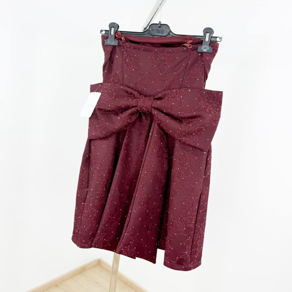 The Bow Accent Mini Dress combines modern elegance with playful details, making it ideal for special occasions, romantic dinners, or festive gatherings. Its structured fit, smooth texture, and subtle shimmer create a luxurious look that flatters every figure. Available in classic shades of burgundy, black, and ivory, it offers versatility and style for any season.