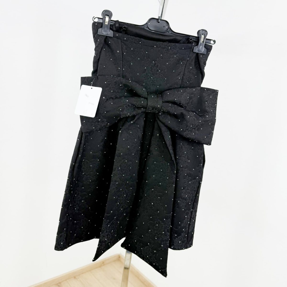 • Elegant mini dress with oversized waist bow