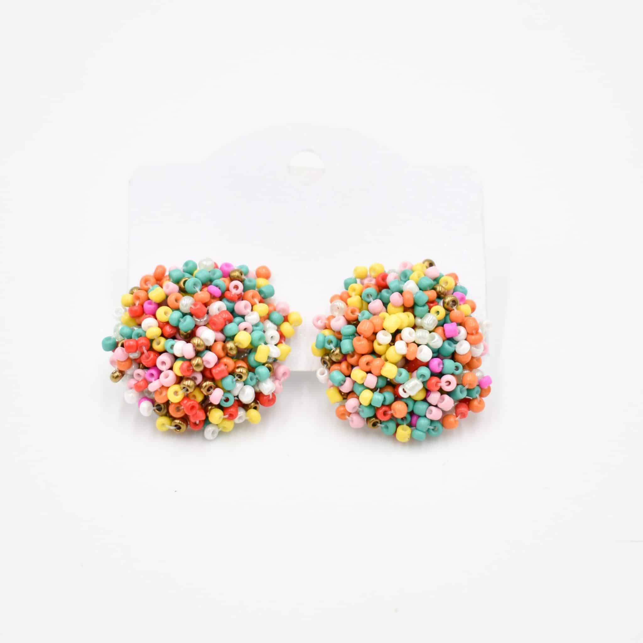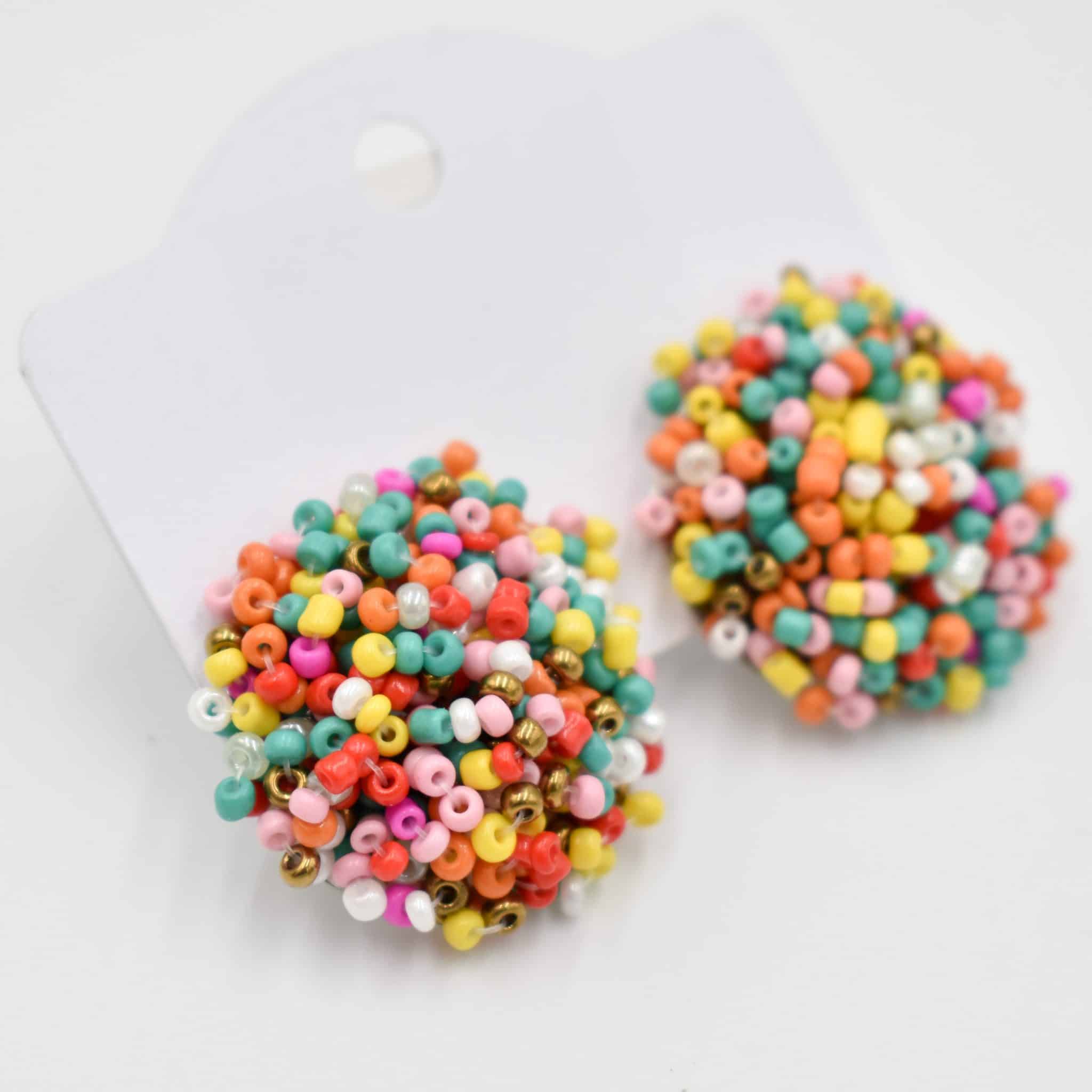 Add a burst of playful energy to your look with the Carnival Crush Beaded Studs. These round earrings are packed with colorful mini beads in a joyful palette, giving off fun, artsy vibes that make them perfect for summer parties, beach days, or any outfit that needs a little extra pop. Lightweight yet bold, they’re the ultimate statement studs for free spirits and trend lovers.