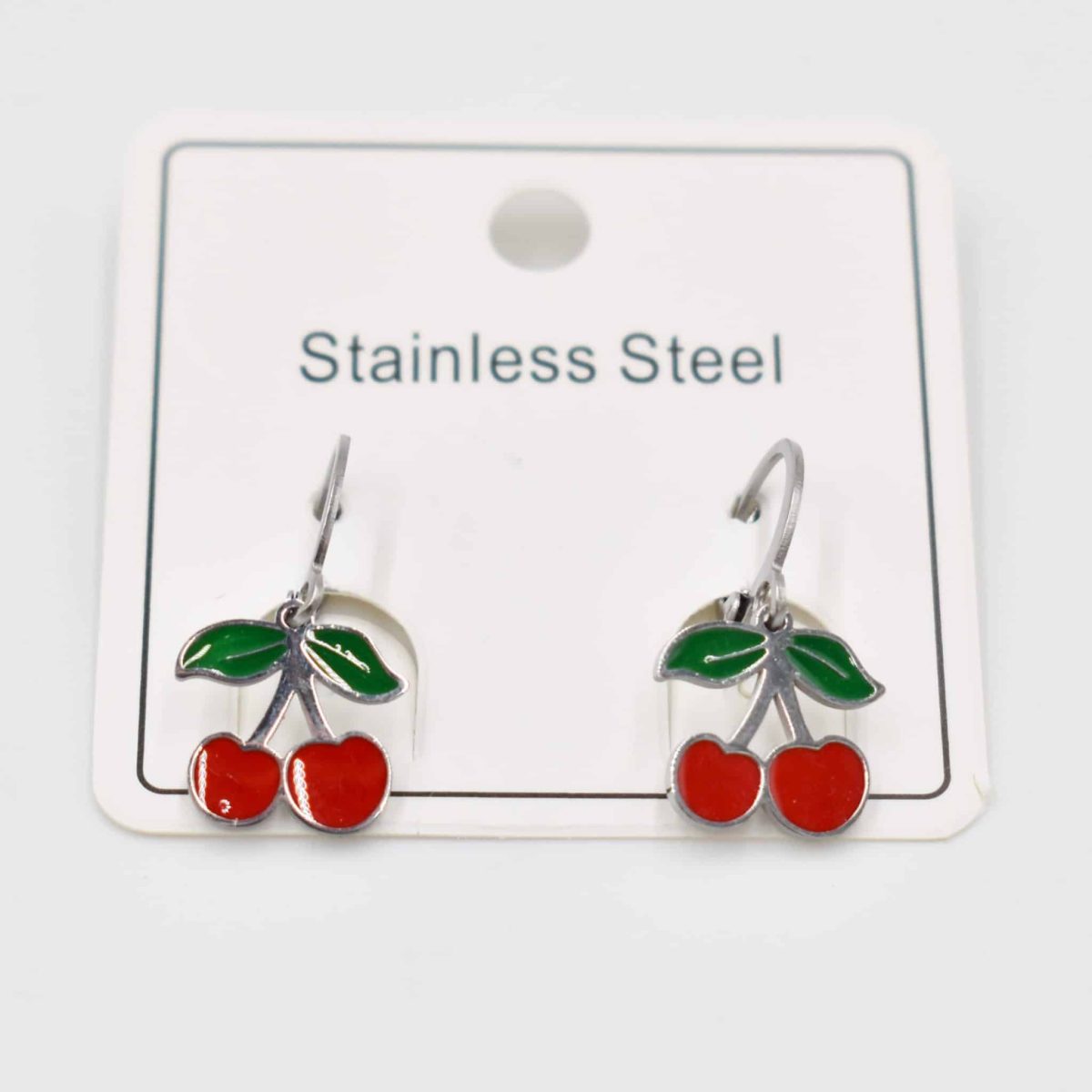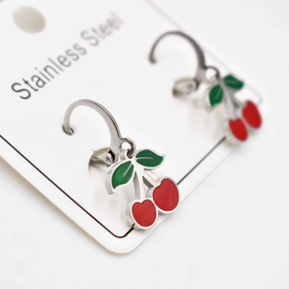 Add a pop of fruity fun to your summer style with these playful cherry drop earrings in a silver-tone finish.