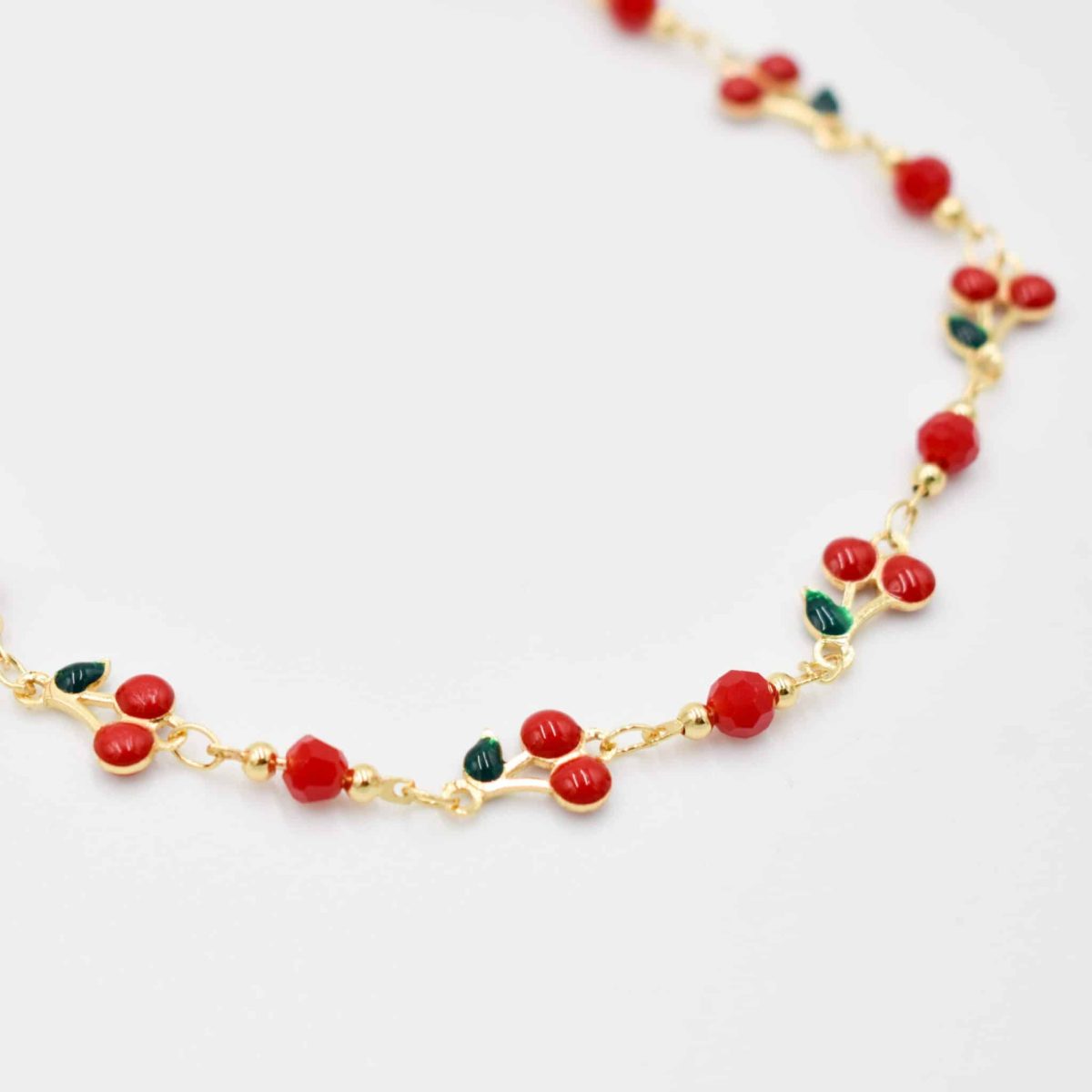 Gold-tone chain with enameled cherry and leaf charms