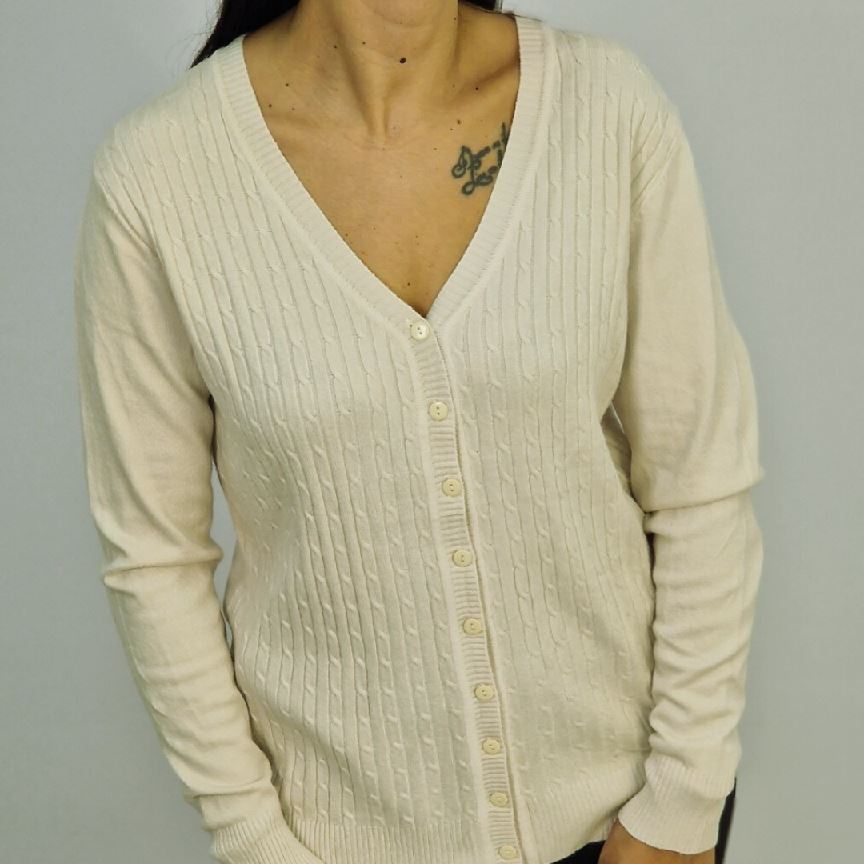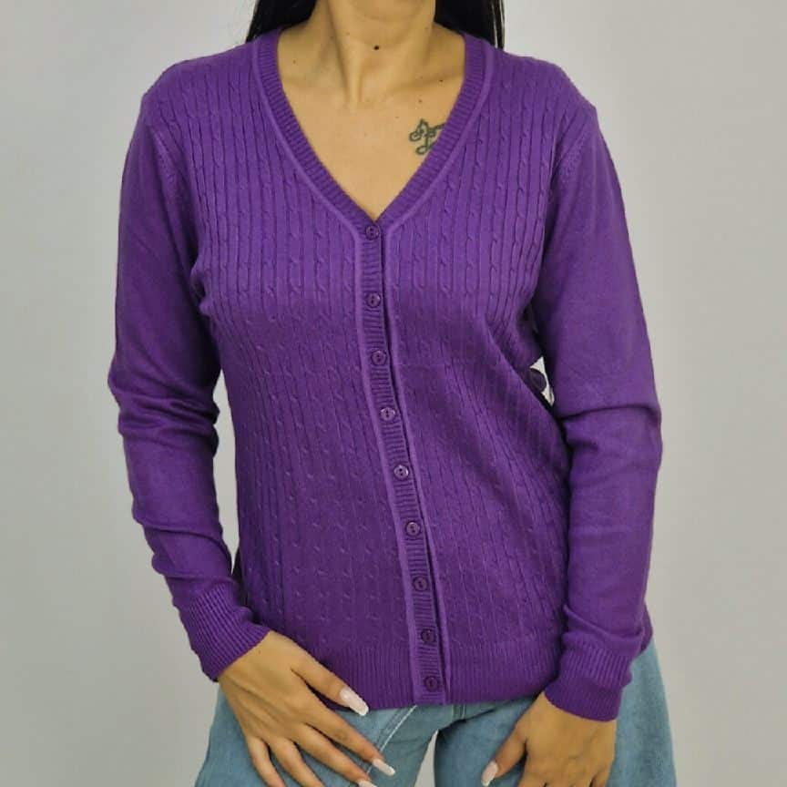 A timeless cable knit cardigan featuring a flattering V-neckline and button-front closure. This versatile piece adds a touch of sophistication to your everyday wardrobe, offering both warmth and style. Perfect for layering over your favorite tops or dresses, it’s a must-have staple for any season. Available in a range of rich colors to suit every mood and occasion.