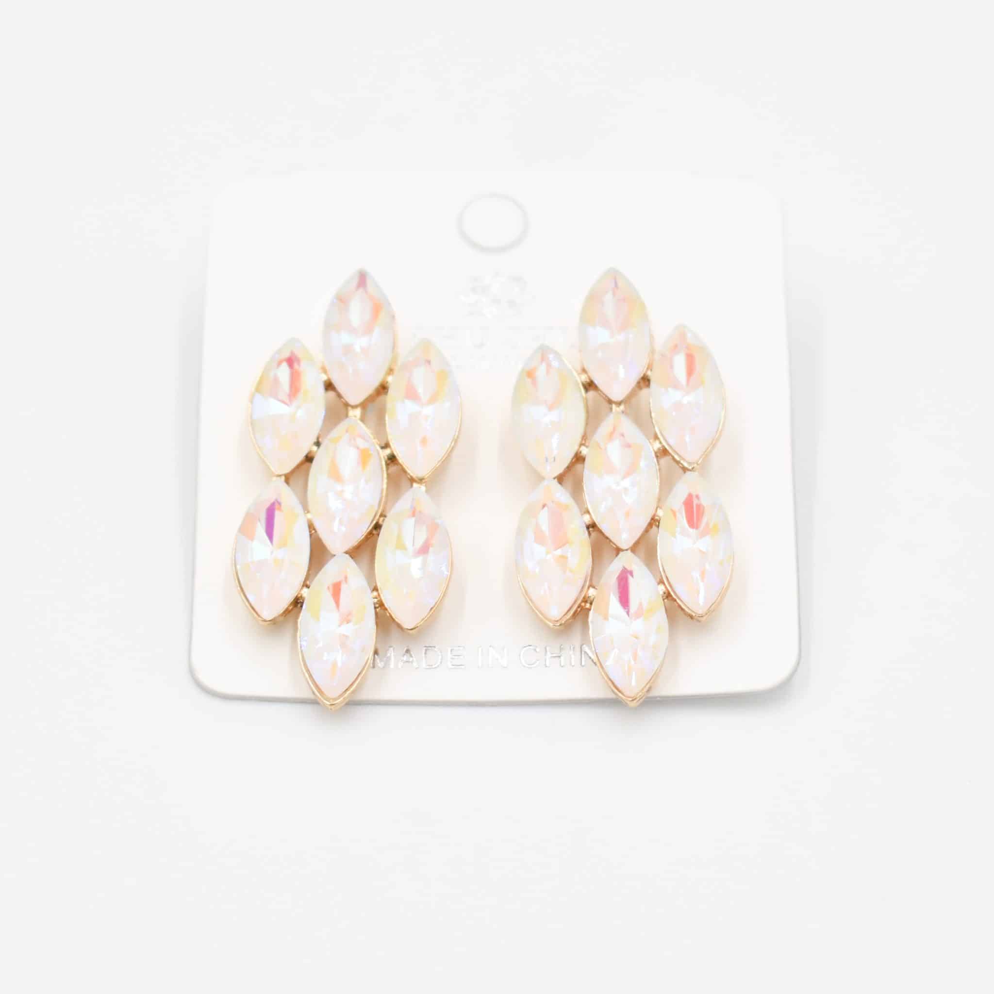 Make an entrance with these dazzling Crystal Bloom Cluster Earrings, featuring radiant marquise-cut gems in a shimmering white opal finish. Their layered petal-inspired design and reflective crystal sheen add a luxurious glow to any outfit, from evening wear to bridal looks. Lightweight yet eye-catching, they’re perfect for modern glam lovers who want to sparkle effortlessly.