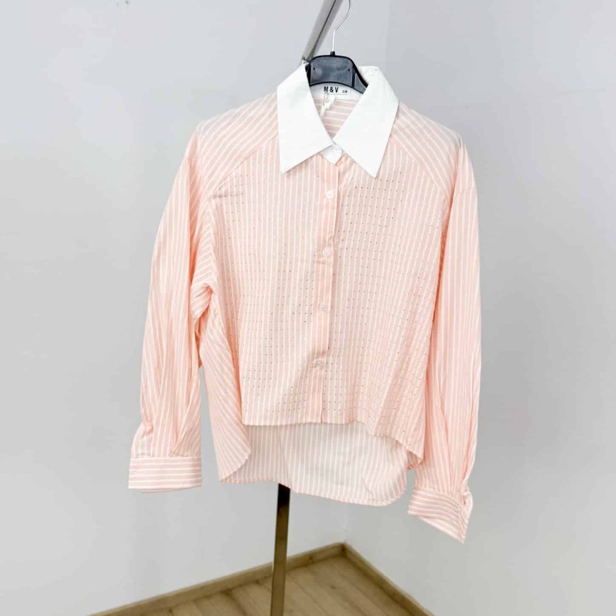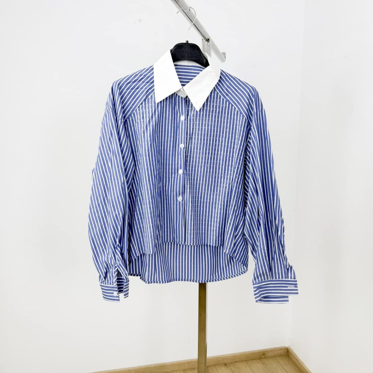 Crystal Stripe Contrast Collar Shirt
