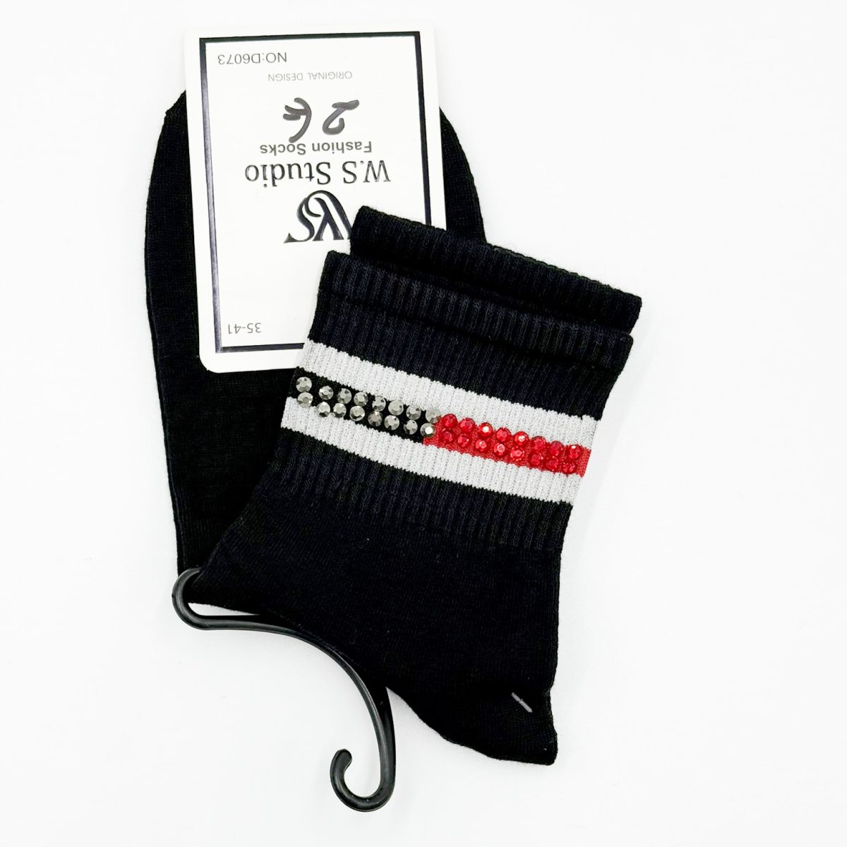 Upgrade your everyday style with these fashion-forward socks designed to stand out. Featuring a sleek ribbed texture and a striking crystal-embellished stripe, they add a subtle touch of glamour to casual and sporty outfits alike. Soft, stretchy, and comfortable for all-day wear, these socks are perfect for pairing with sneakers, loafers, or ankle boots. A stylish detail that instantly elevates even the simplest look.