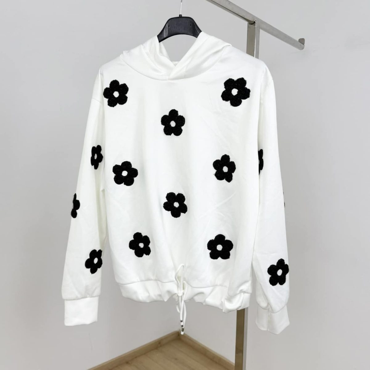 Add a playful twist to your casual wardrobe with this daisy print hoodie, featuring a soft fleece feel and all-over embroidered floral patterns. The drawstring hem lets you adjust the fit to your liking, while the relaxed cut offers all-day comfort and ease. Ideal for layering on chilly days or making a cute style statement year-round.