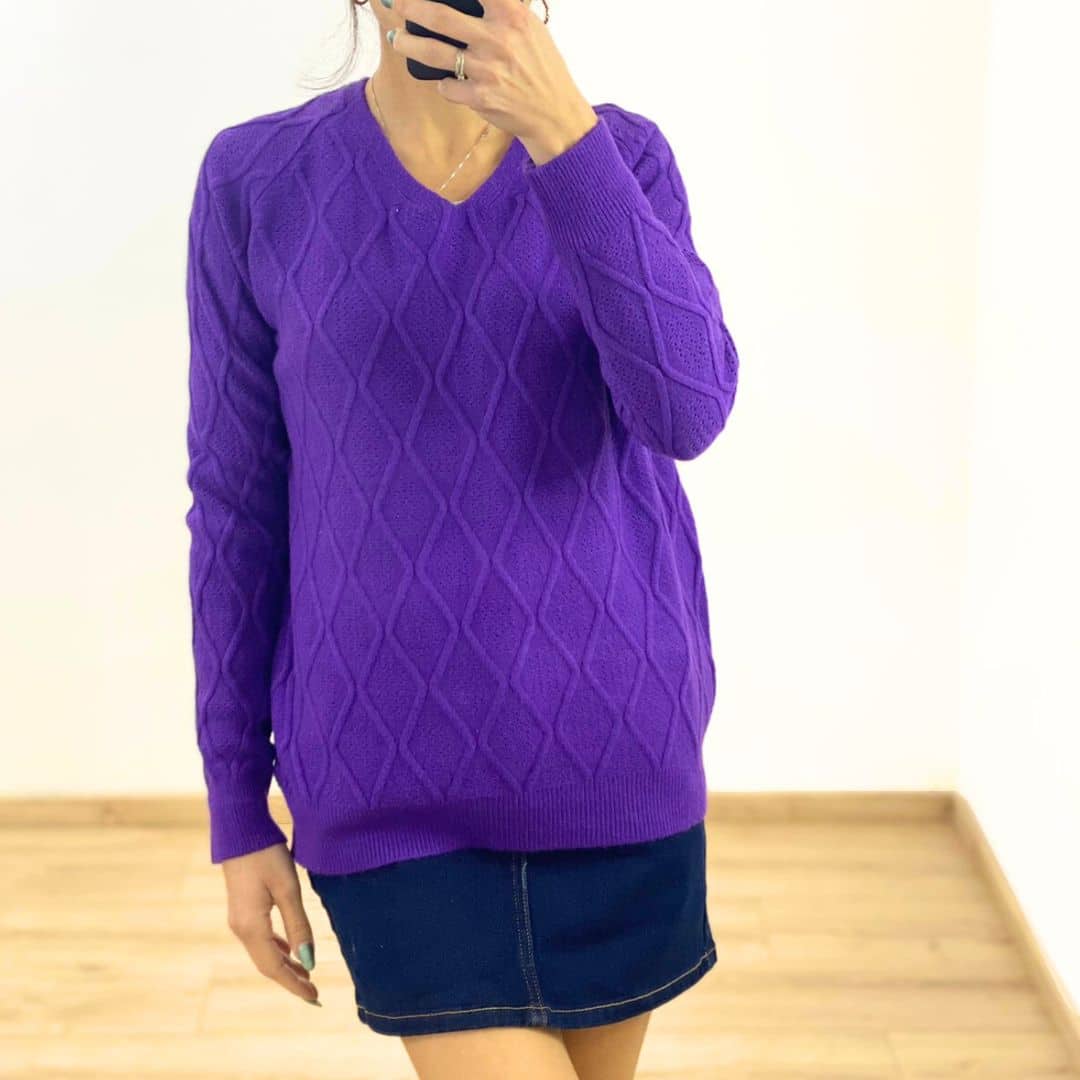 Elevate your everyday wardrobe with the Diamond Knit V-Neck Sweater. Featuring a timeless diamond pattern and a flattering V-neckline, this sweater is both cozy and stylish. Its soft texture and relaxed fit make it perfect for layering or wearing on its own, adding sophistication to any casual look. Available in a range of vibrant and neutral colors to suit any style.