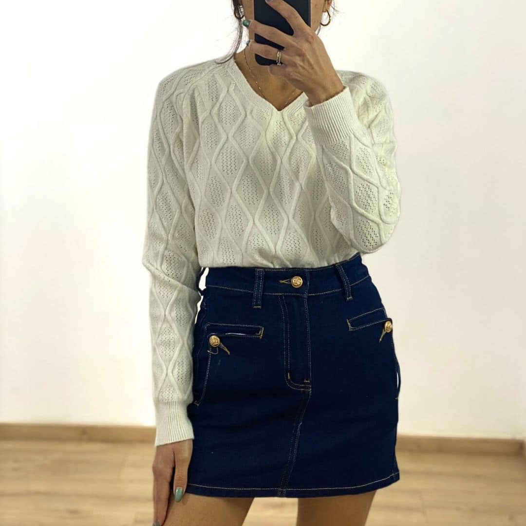 Diamond Knit V-Neck Sweater
