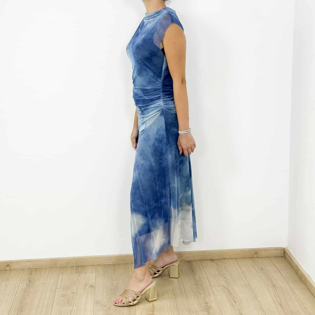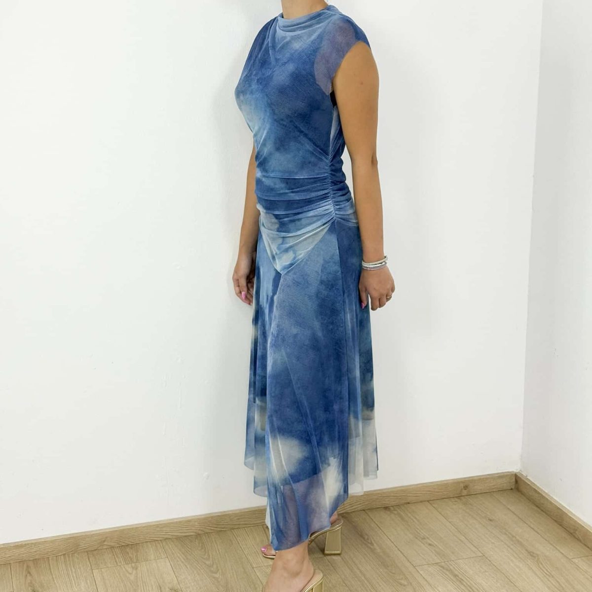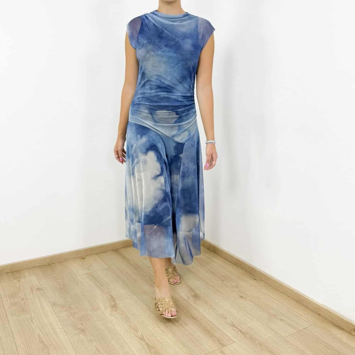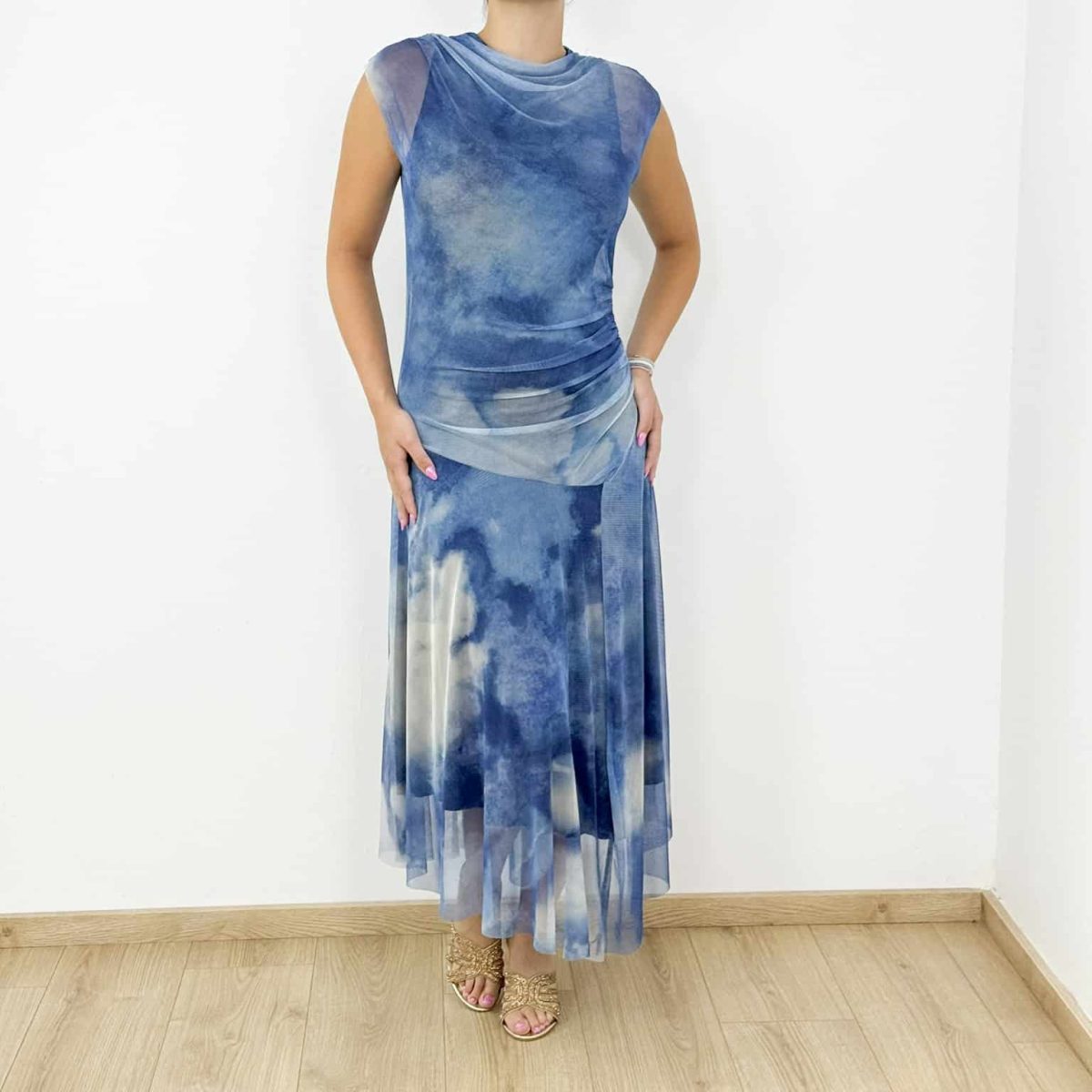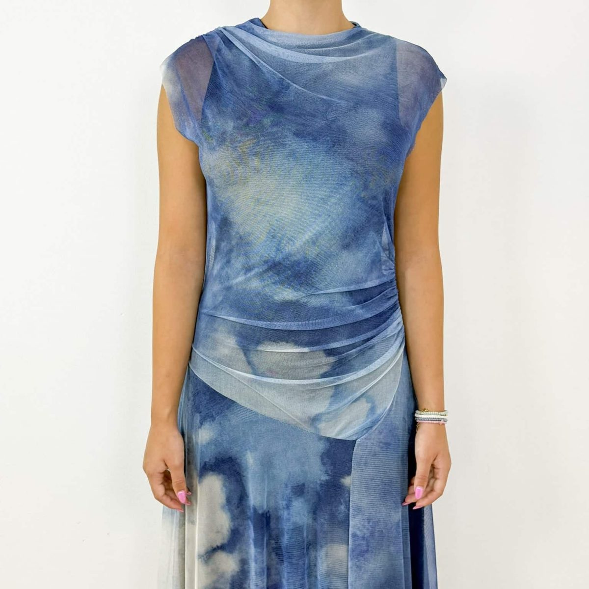 Step into effortless elegance with the Ibiza Dream Tie-Dye Maxi Dress, designed for modern women who love a touch of bohemian charm. Featuring a soft mesh overlay with dreamy cloud-like tie-dye patterns, this maxi dress combines comfort and sophistication. Its draped detailing around the waist creates a flattering silhouette, while the lightweight flowy fabric makes it ideal for warm summer days and chic evening outings.