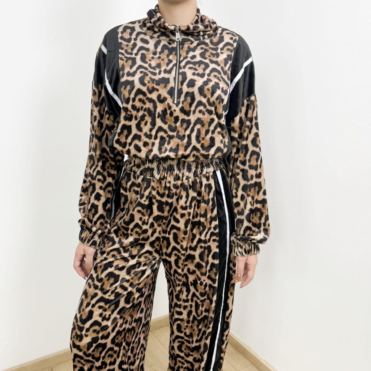 Make a bold statement in our leopard velvet tracksuit, a luxurious and fashion-forward two-piece set designed for women who love style with attitude. Crafted from ultra-soft velvet fabric and finished with sporty side stripes, this leopard velvet tracksuit combines comfort, confidence, and wild elegance in one irresistible outfit.