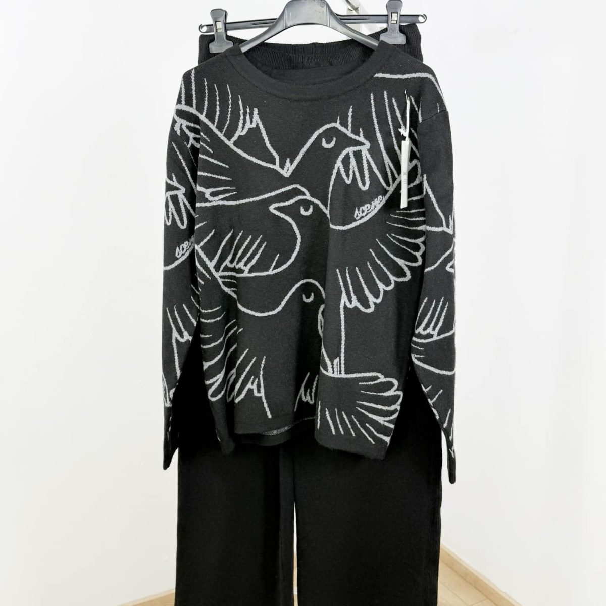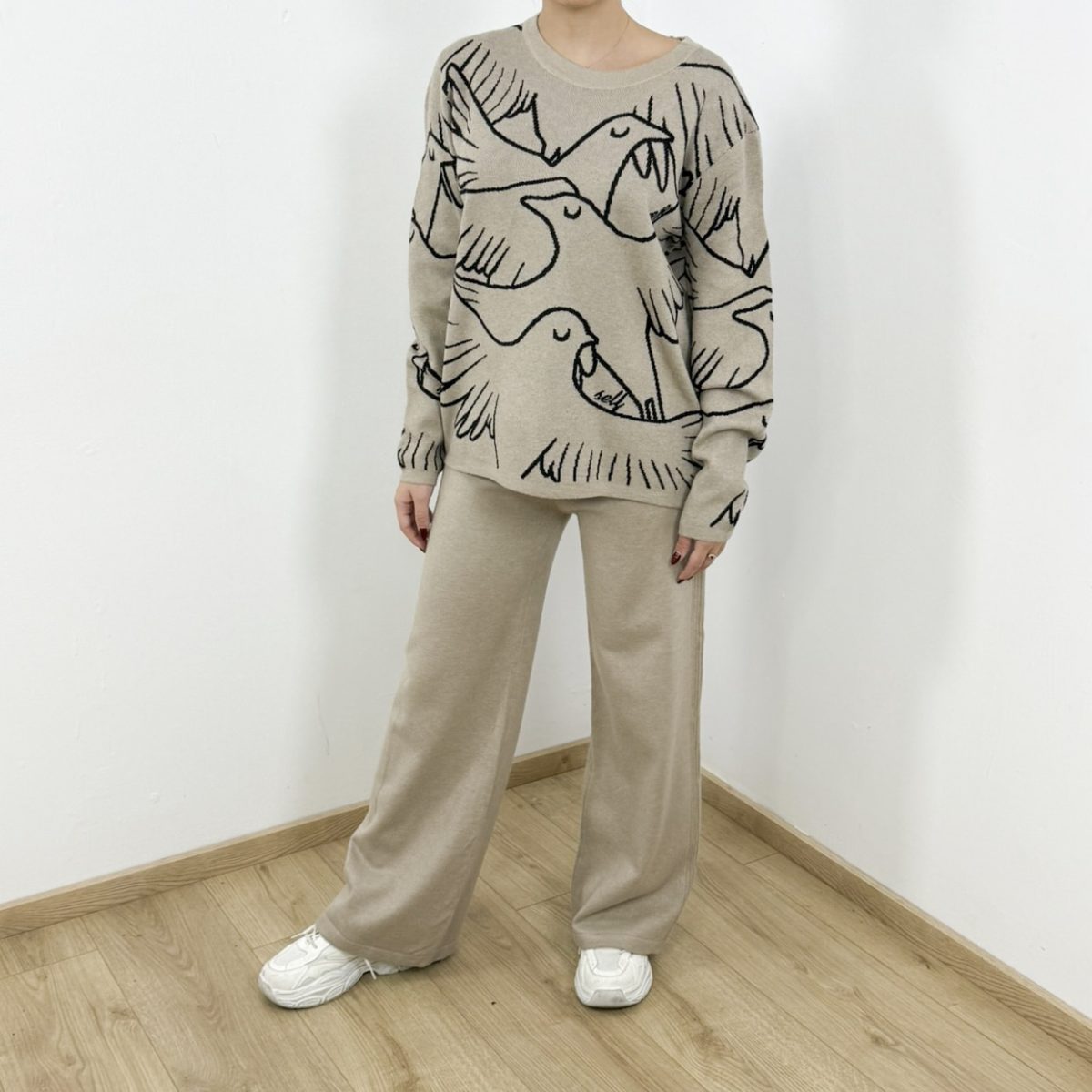 Embrace cozy elegance with the Free Spirit Bird Knit Co-Ord Set, featuring a soft knitted top and matching wide-leg trousers. The artistic bird motif adds a unique, expressive touch, turning a comfortable outfit into a stylish statement. Perfect for relaxed days, casual outings, or elevated loungewear moments where comfort meets personality.