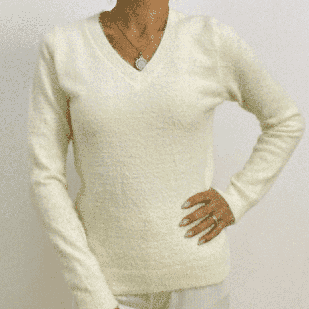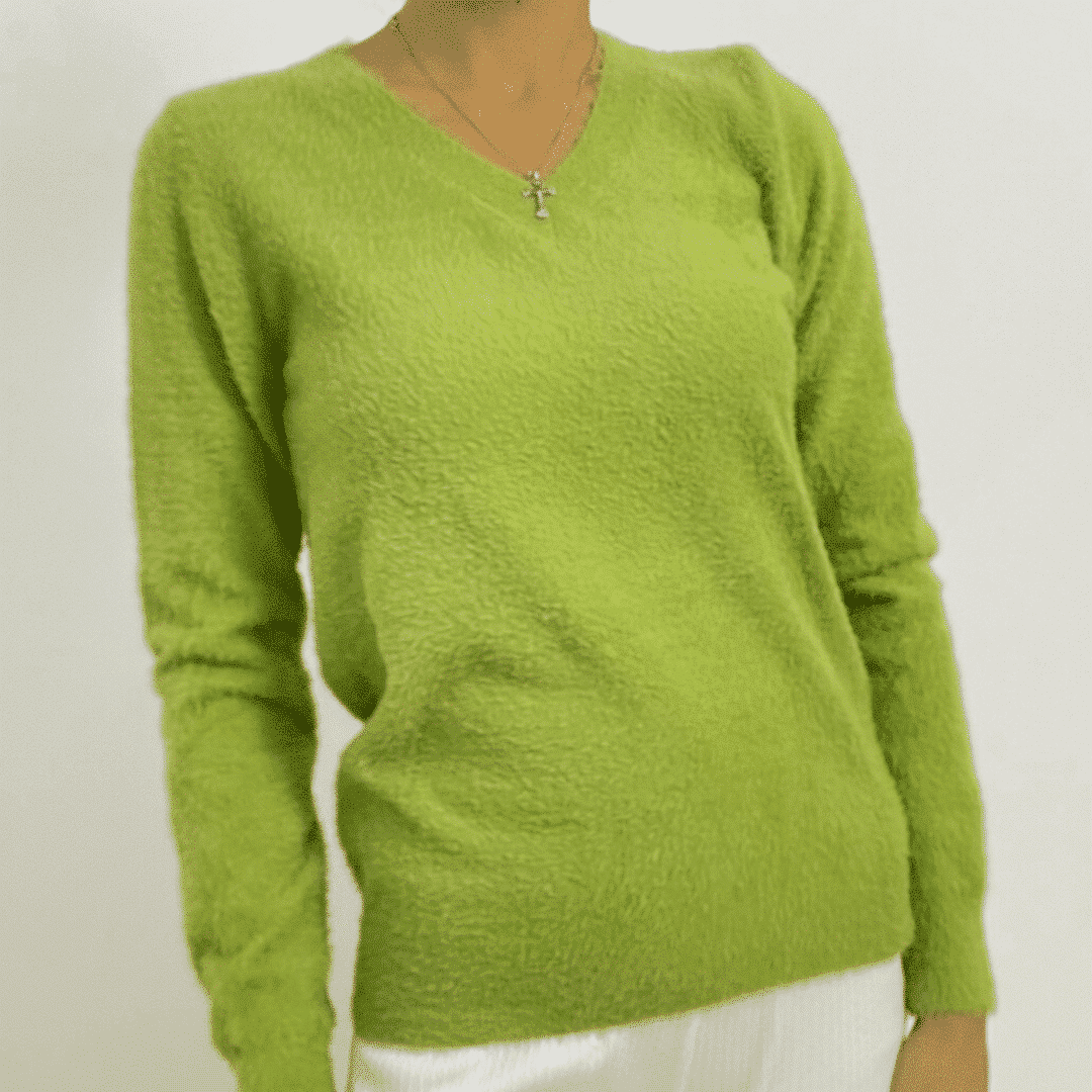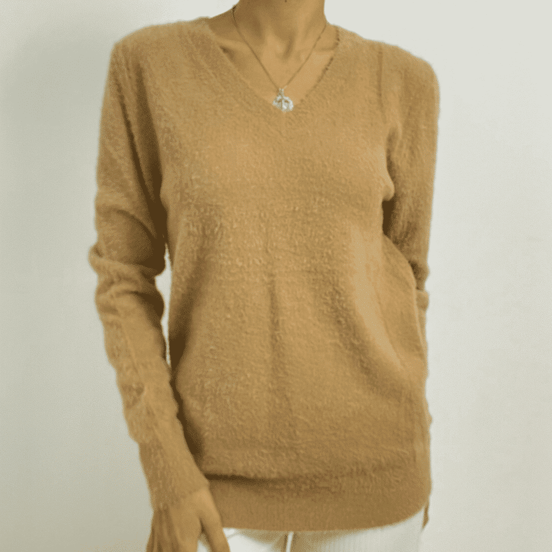 Fuzzy V-Neck Pullover