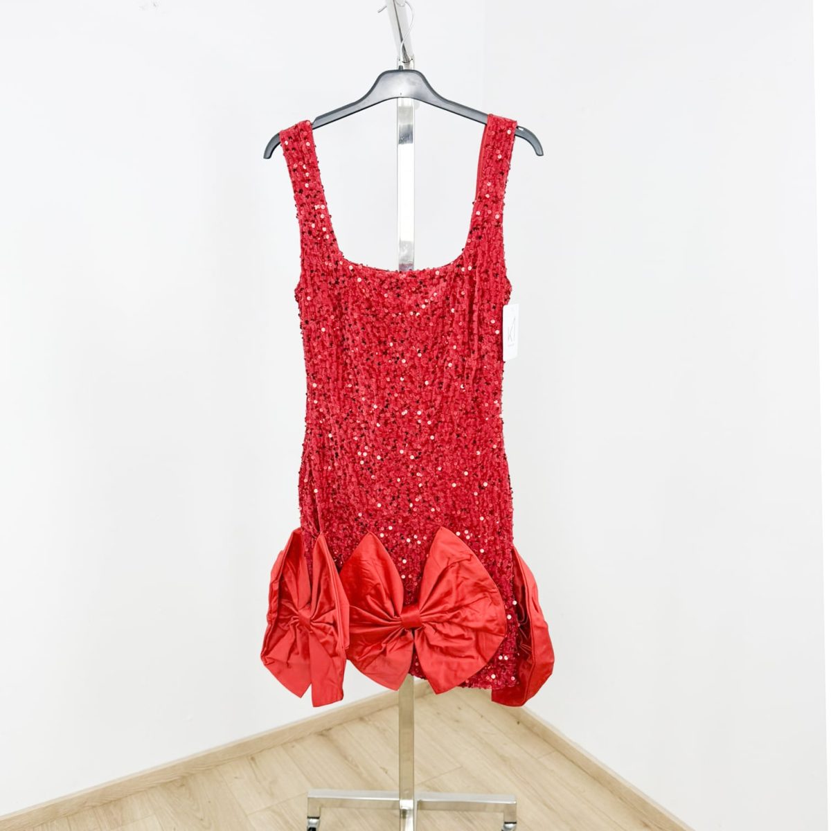 Make a statement with our Sequin Mini Dress, the perfect blend of sparkle, elegance, and playful charm. Designed for women who want to shine, this dazzling mini dress features a figure-hugging silhouette adorned with shimmering sequins that reflect light from every angle. The square neckline and wide straps add sophistication, while the standout bow details at the hem give it a fun and glamorous twist.