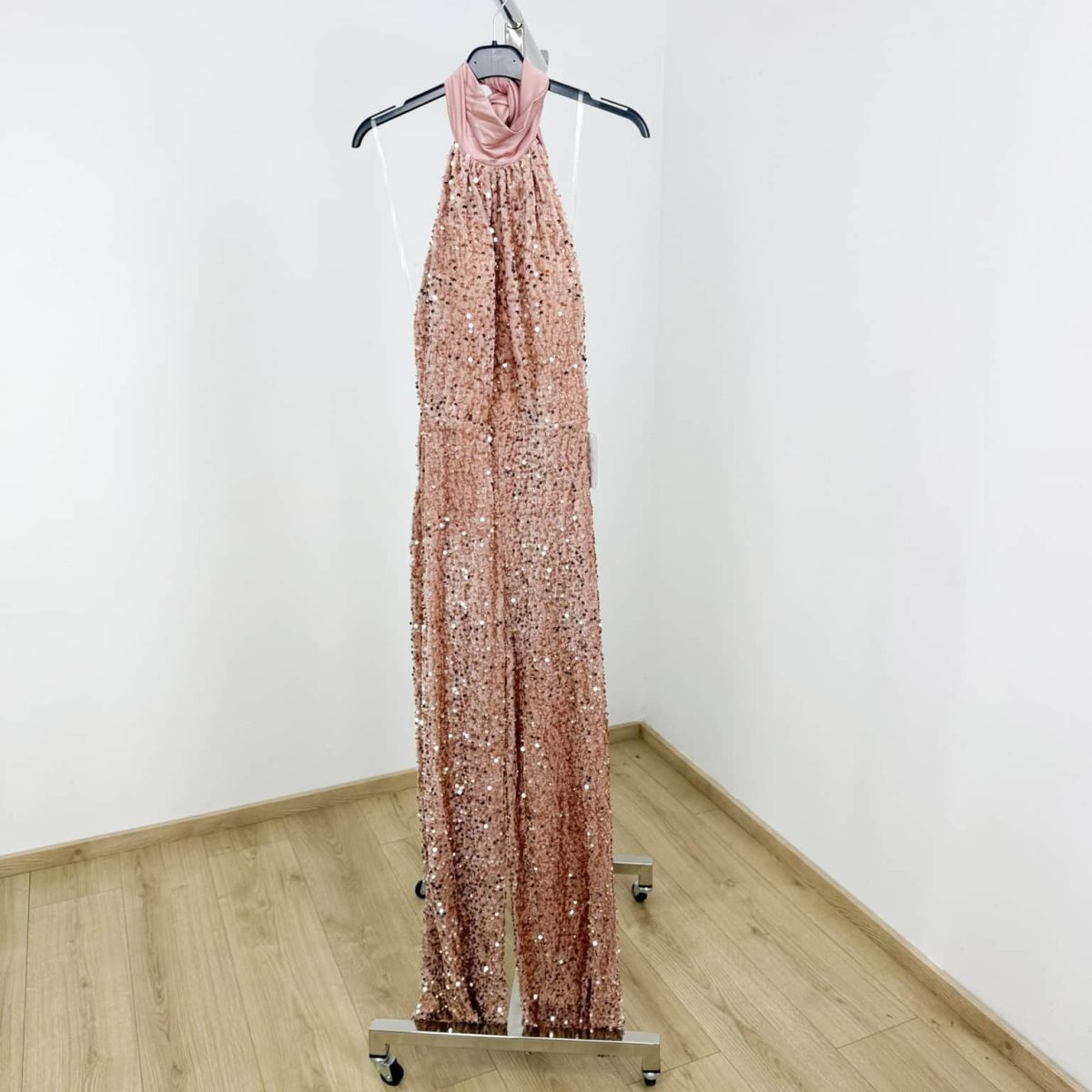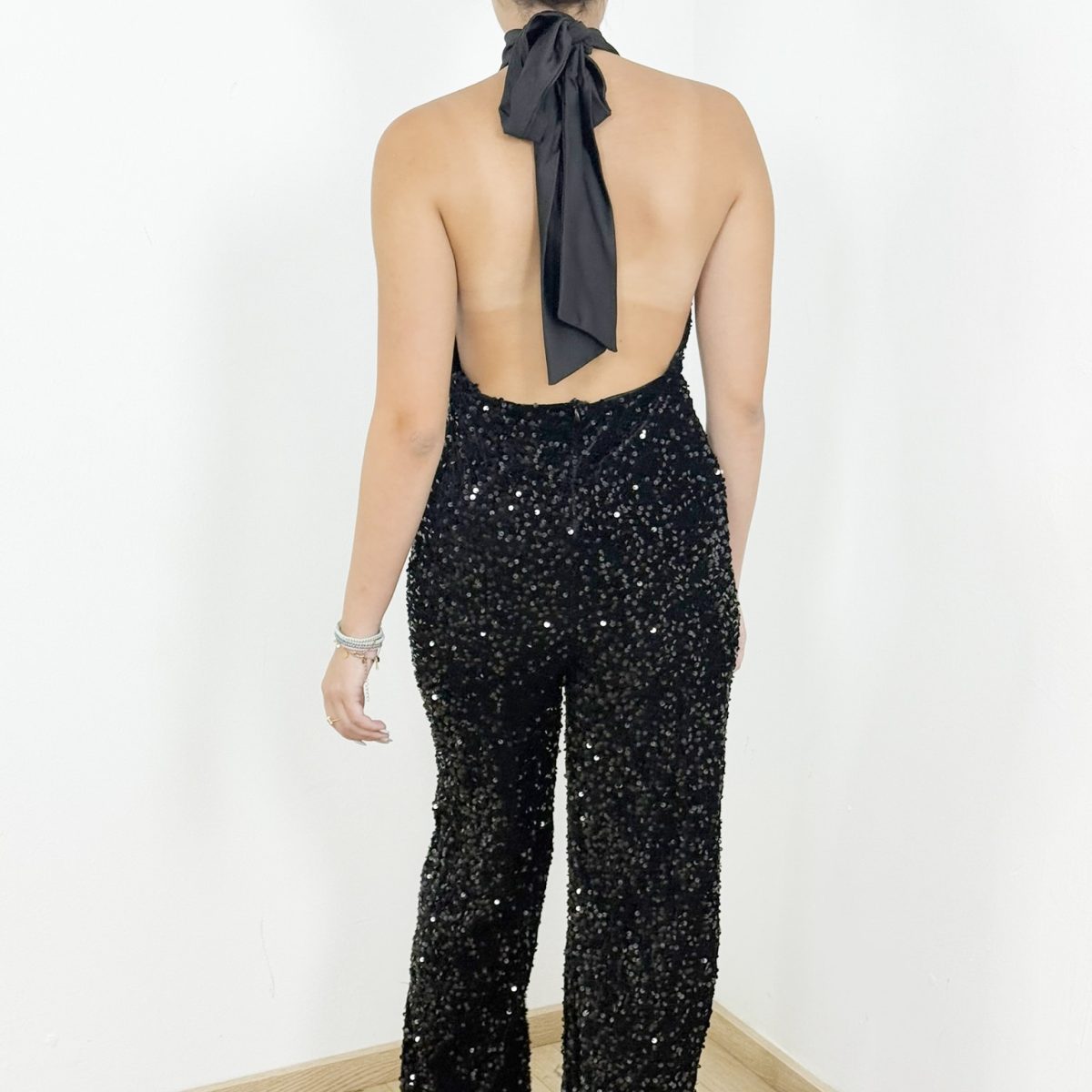 Style Tip: Pair your Sequin Halter Jumpsuit with stiletto heels and a clutch bag for a red-carpet-inspired look. Add statement earrings to elevate the glamour even more.