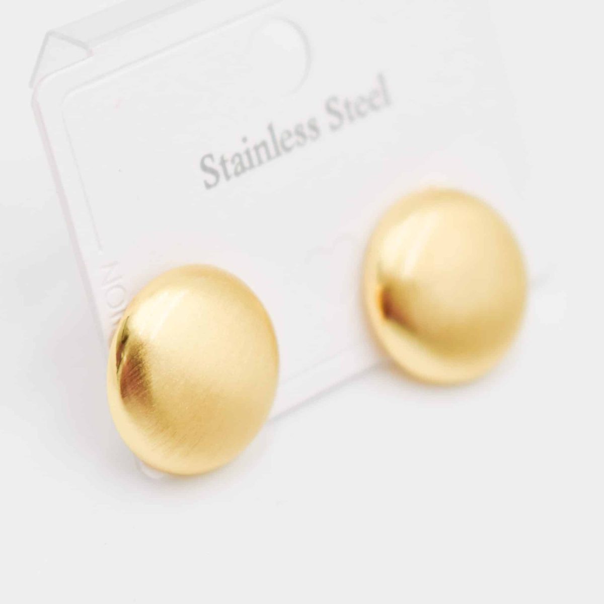 Elevate your everyday elegance with the Golden Aura Dome Studs. These sleek, brushed gold-tone round earrings offer timeless sophistication and a smooth satin finish that catches the light with every turn.