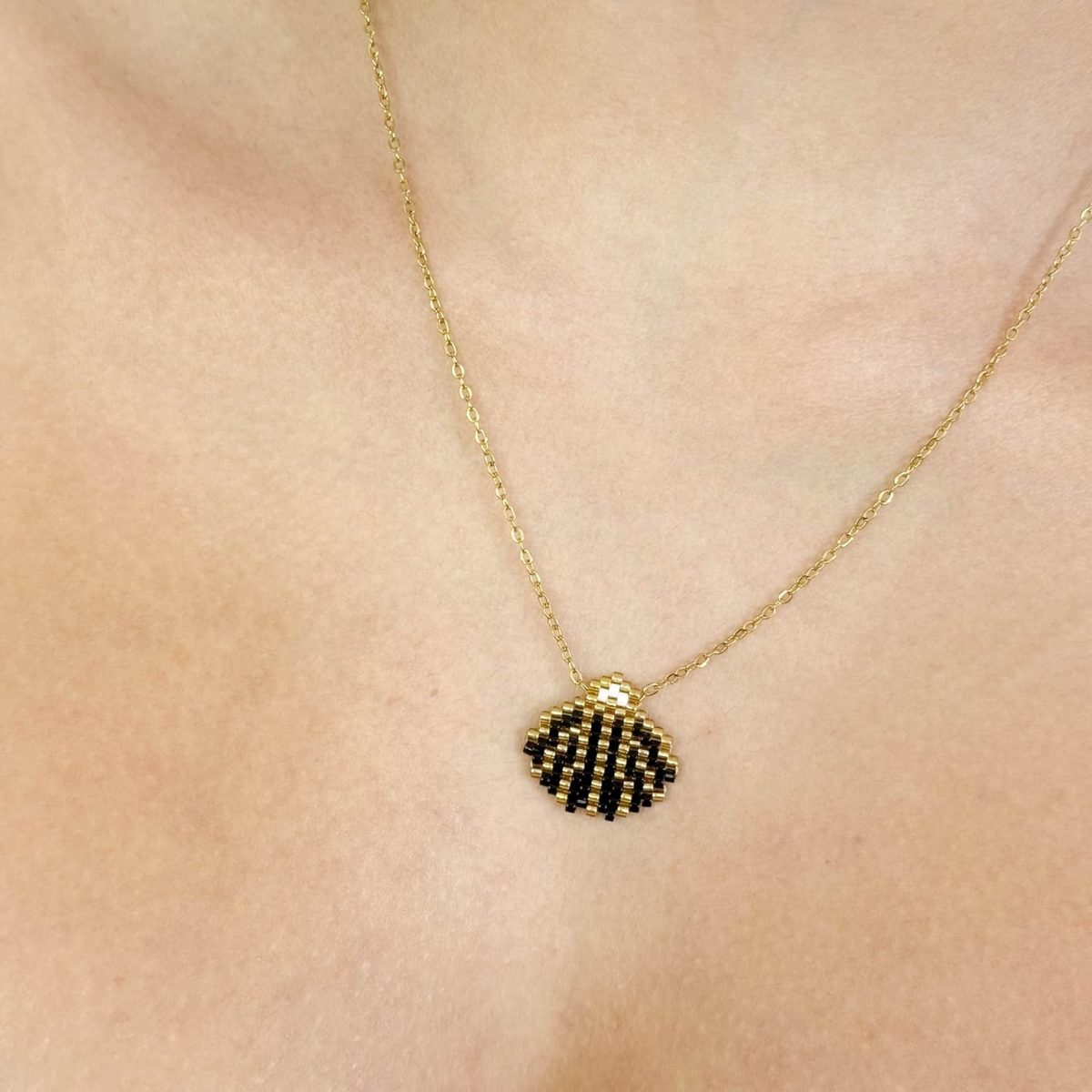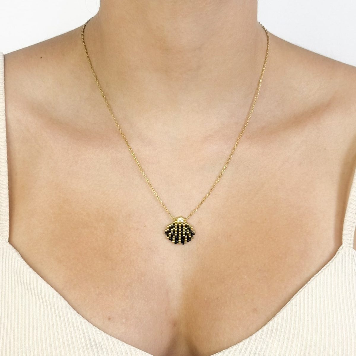 Add a touch of seaside elegance to your summer look with our Golden Shore Shell Necklace. Featuring a handcrafted golden and black beaded seashell pendant, this minimalist yet eye-catching piece brings a luxurious coastal vibe to your outfit.