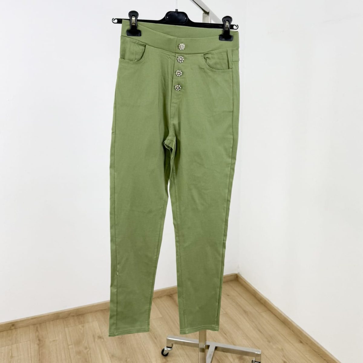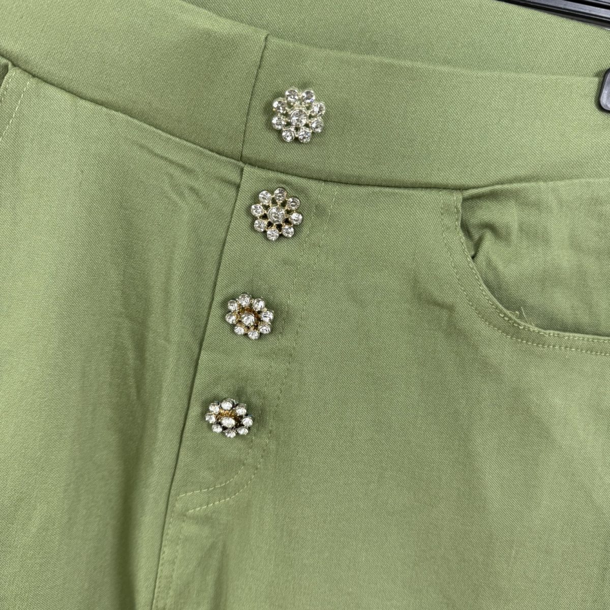 Add a touch of elegance to your everyday look with these High-Waisted Slim Fit Pants. Designed with a flattering silhouette, these pants feature sparkling crystal flower buttons for a feminine and eye-catching finish. The soft stretch fabric ensures all-day comfort, while the high-rise waist enhances your shape. Available in beige, olive green, black, and white—perfect for both casual-chic and polished outfits.
