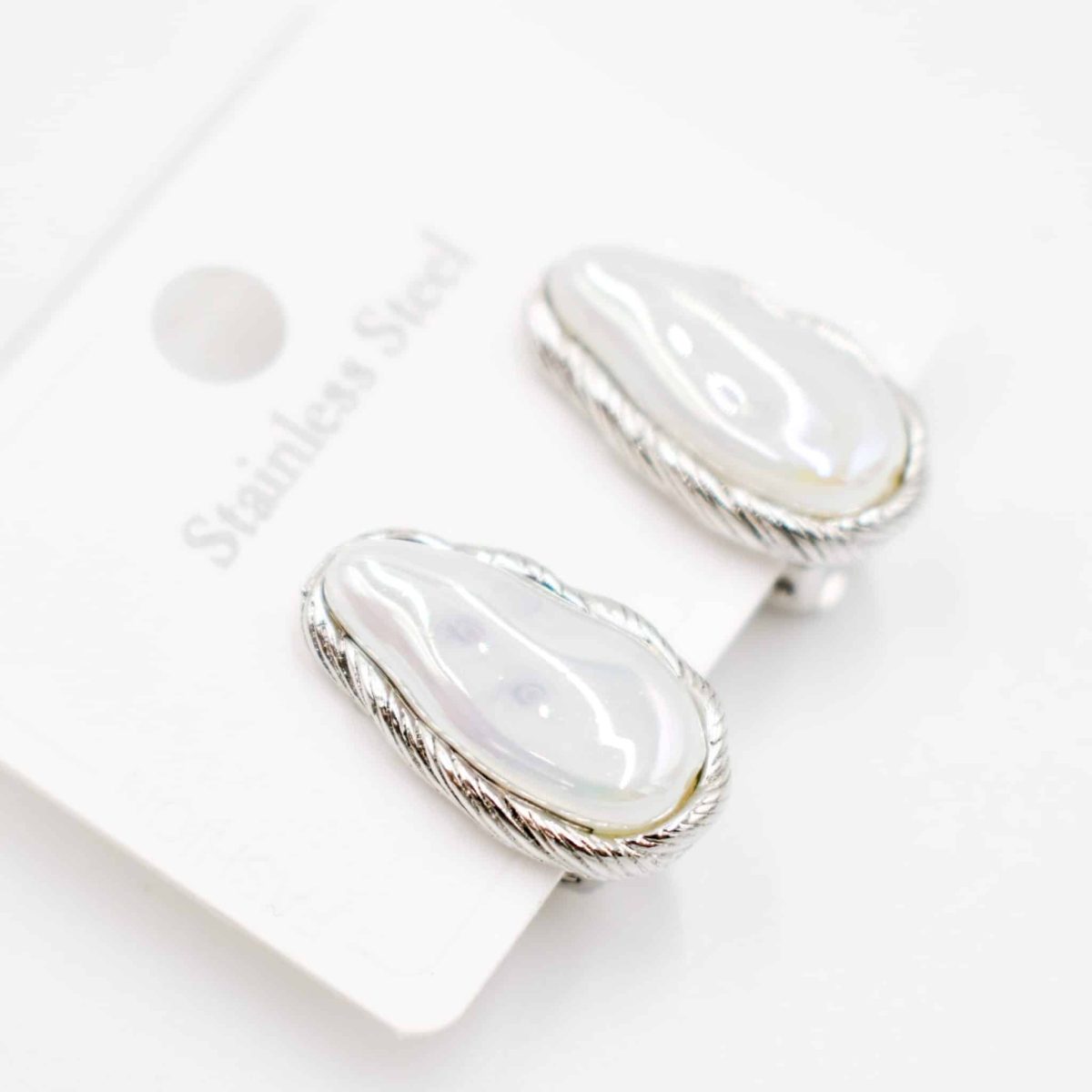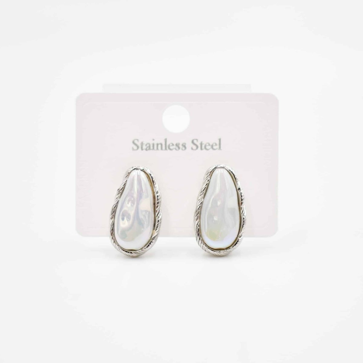 Add a touch of natural elegance to your summer look with these iridescent teardrop earrings. Featuring a luminous mother-of-pearl-like centerpiece in a silver twisted border, this pair brings effortless charm and sophistication to any outfit. Lightweight yet impactful, they’re ideal for both day and night styling.