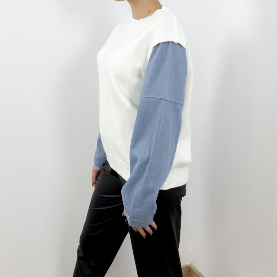 Knit Sweater with Denim Sleeves