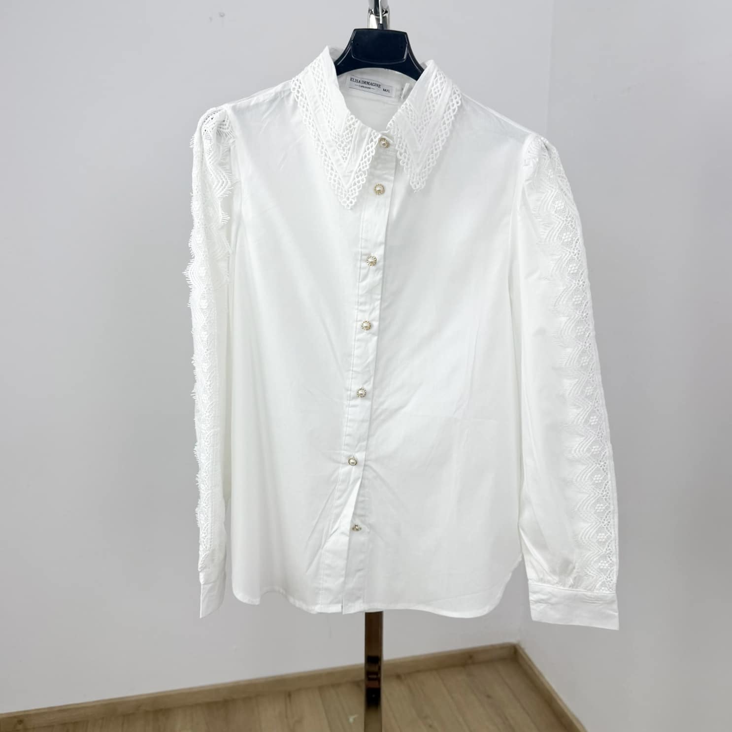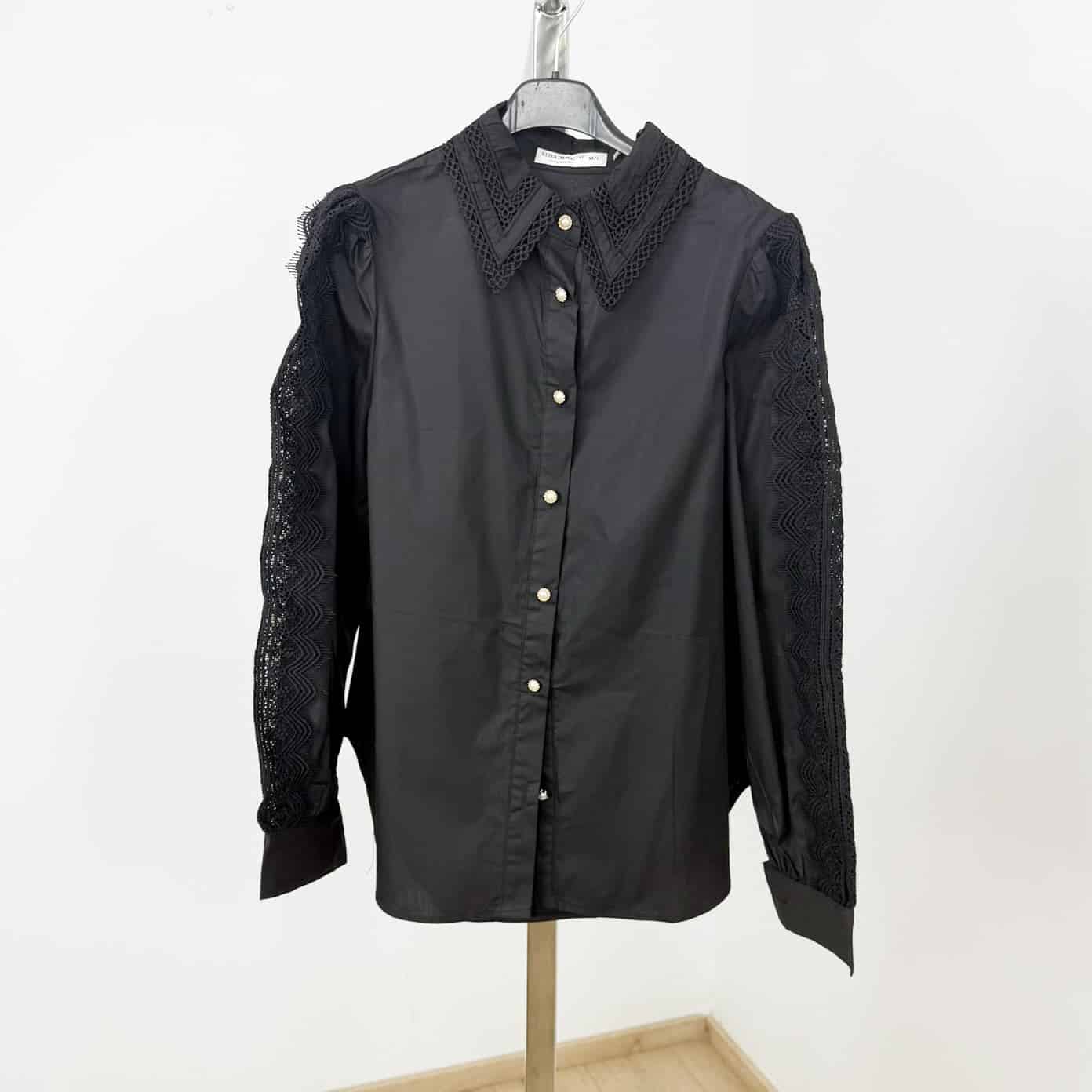 This elegant long-sleeve blouse blends timeless charm with modern sophistication, perfect for elevating both casual and formal looks. Designed with delicate lace detailing along the collar and sleeves, it offers a feminine touch without compromising on comfort.