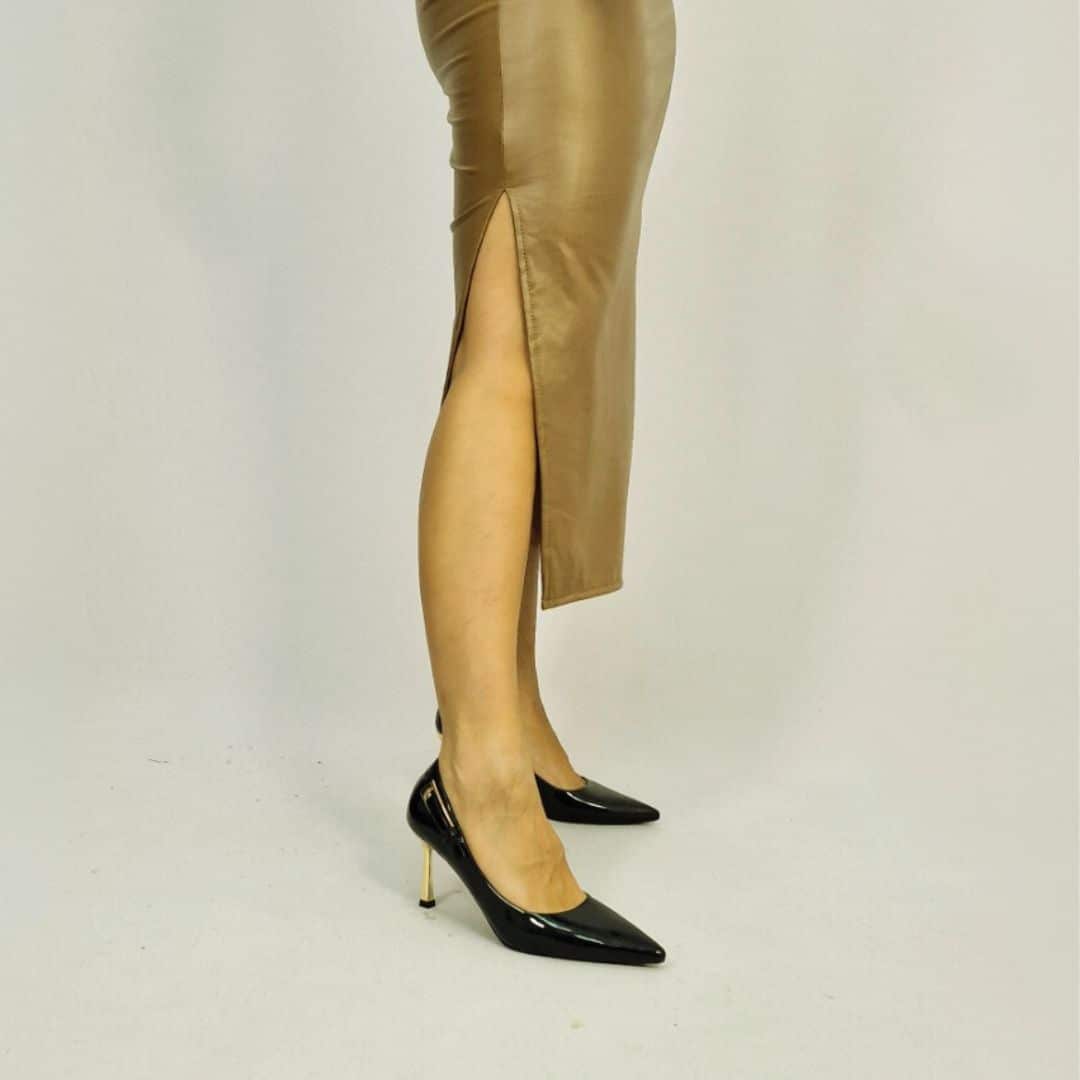 Slip into sophistication with the Luxe Leather Midi Dress, featuring a sleek silhouette and a soft, glossy finish. This timeless piece has a flattering square neckline, adjustable spaghetti straps, and a subtle side slit, perfect for adding a hint of allure.