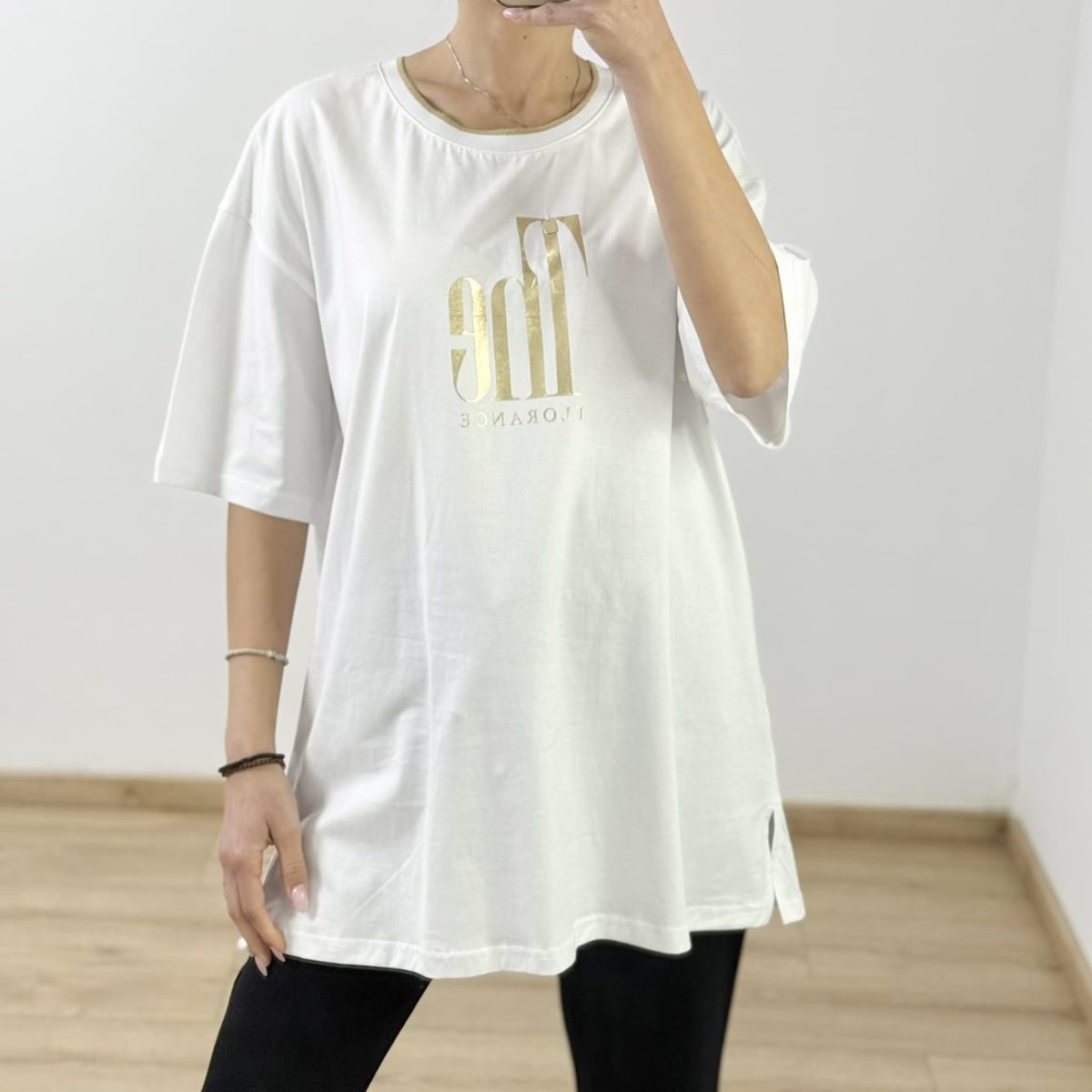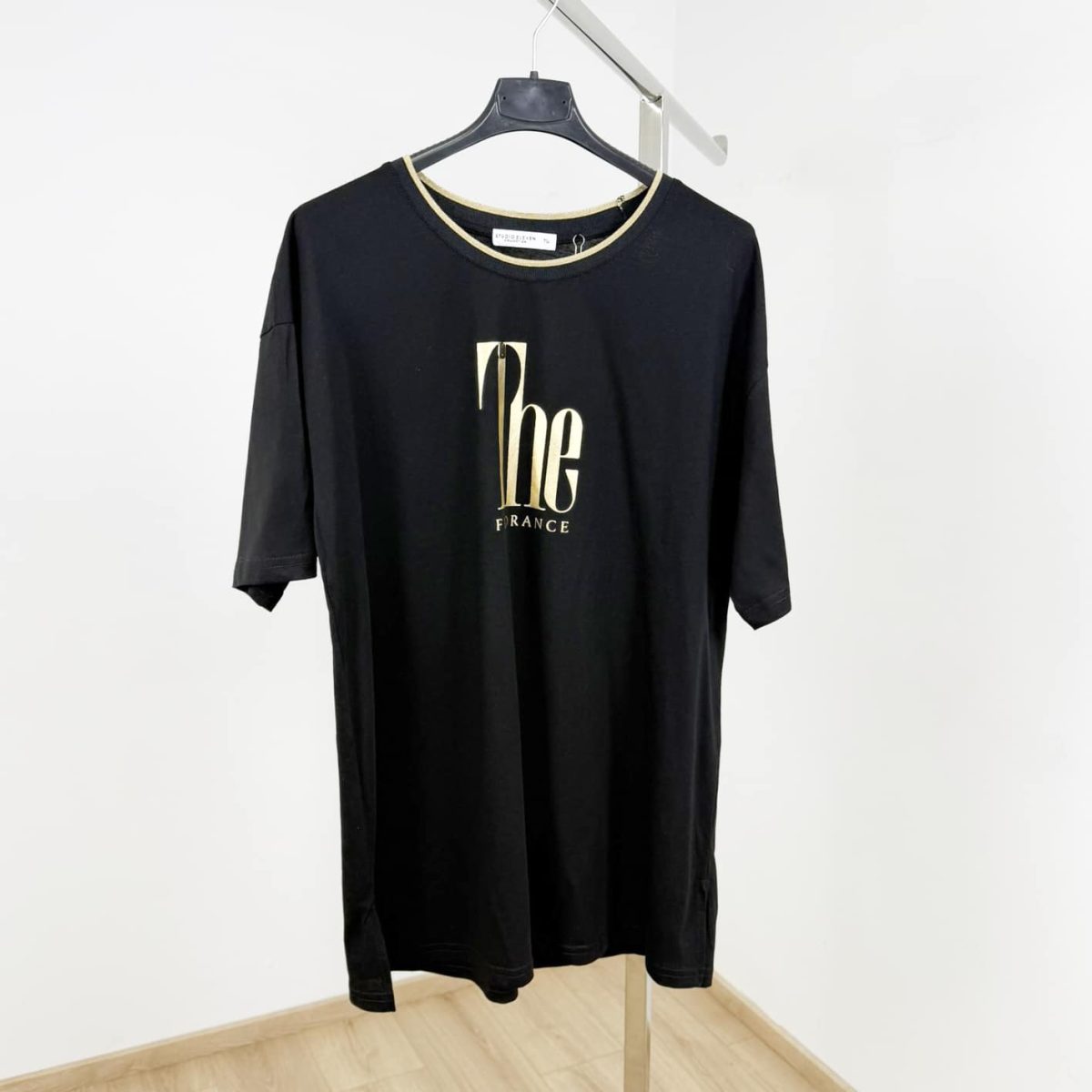 Elevate your everyday style with the Luxe Oversized Tee, featuring a bold gold “The France” print for a sleek, fashion-forward vibe. Designed in a relaxed fit with a subtle shimmer at the collar, this tee is perfect for pairing with jeans, trousers, or shorts for an effortlessly chic look. Available in both classic black and white.