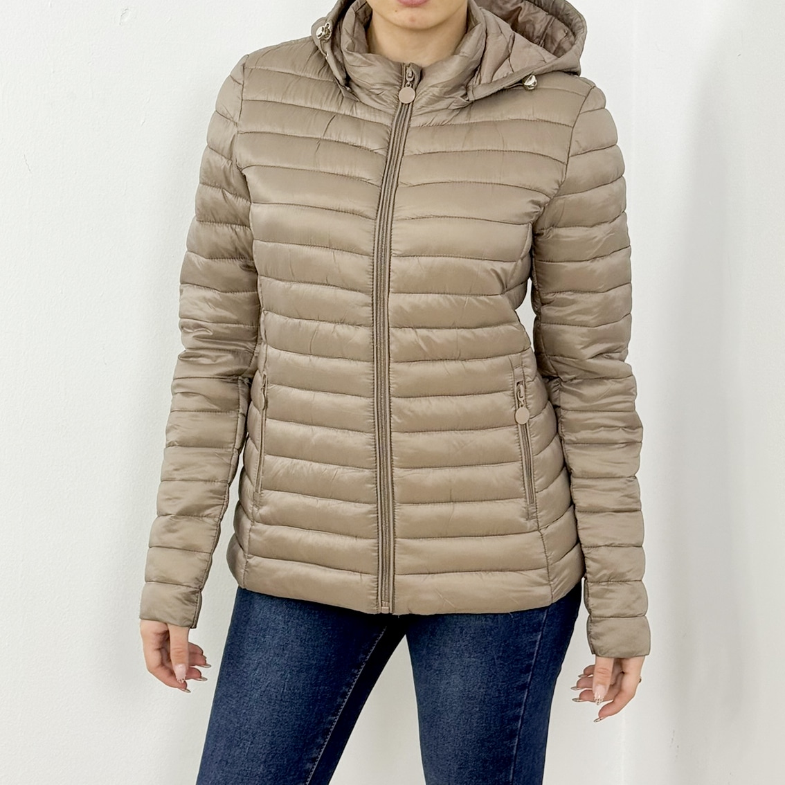 Stay warm and stylish with our Luxe Puffer Hooded Jacket in elegant sand taupe. Designed with lightweight padding for maximum comfort, this jacket offers a flattering fitted silhouette that enhances your everyday winter look. It features a full front zipper, two secure side pockets, and an adjustable hood for added protection against the cold. Perfect for daily wear, travel, or layering over casual outfits, this versatile puffer jacket is a must-have for the season.