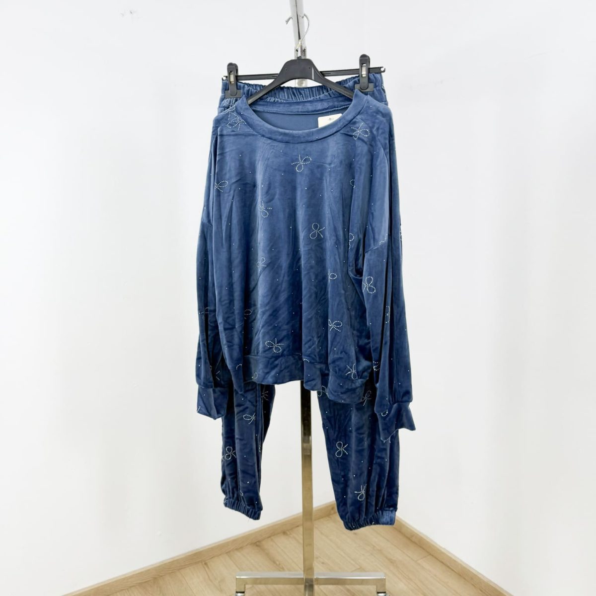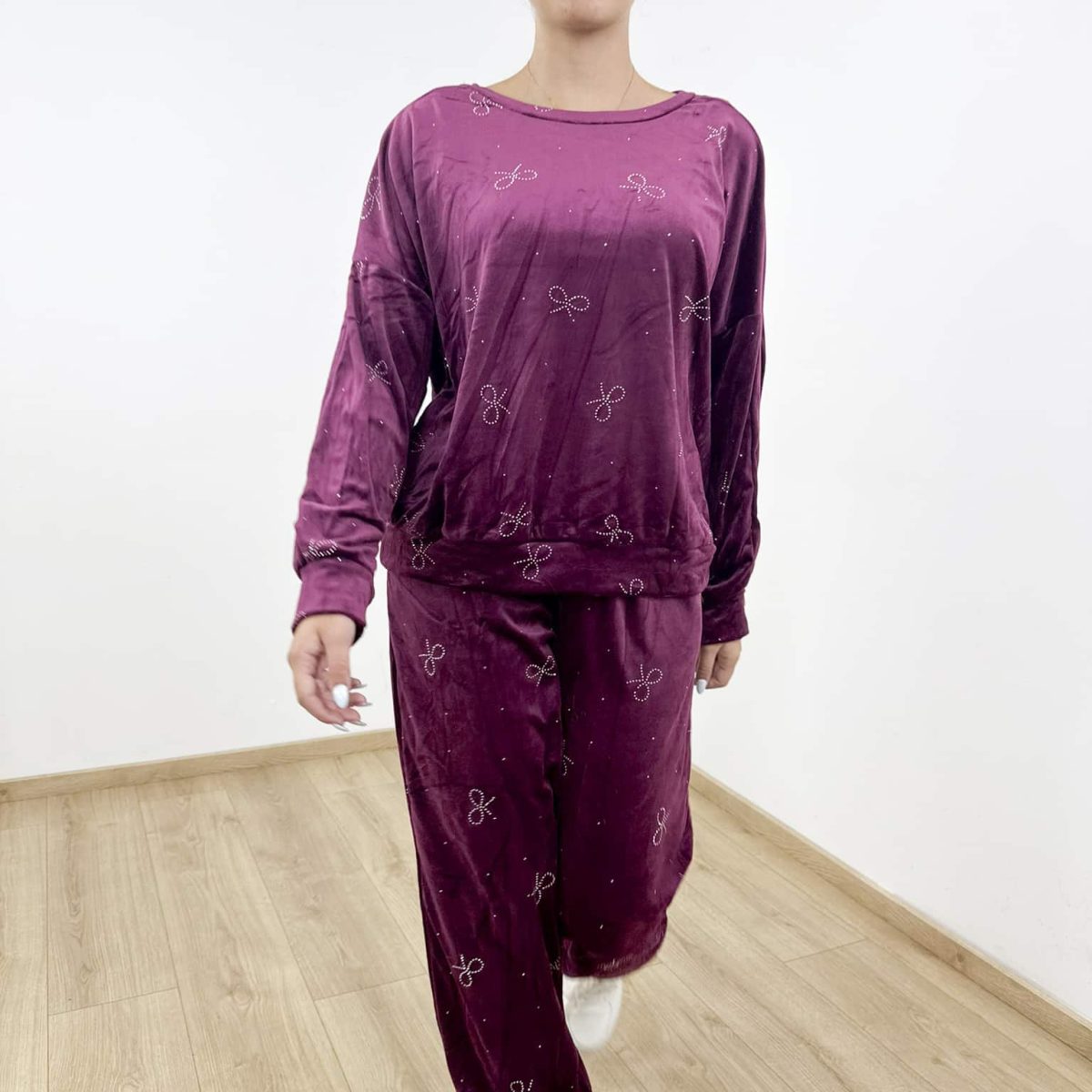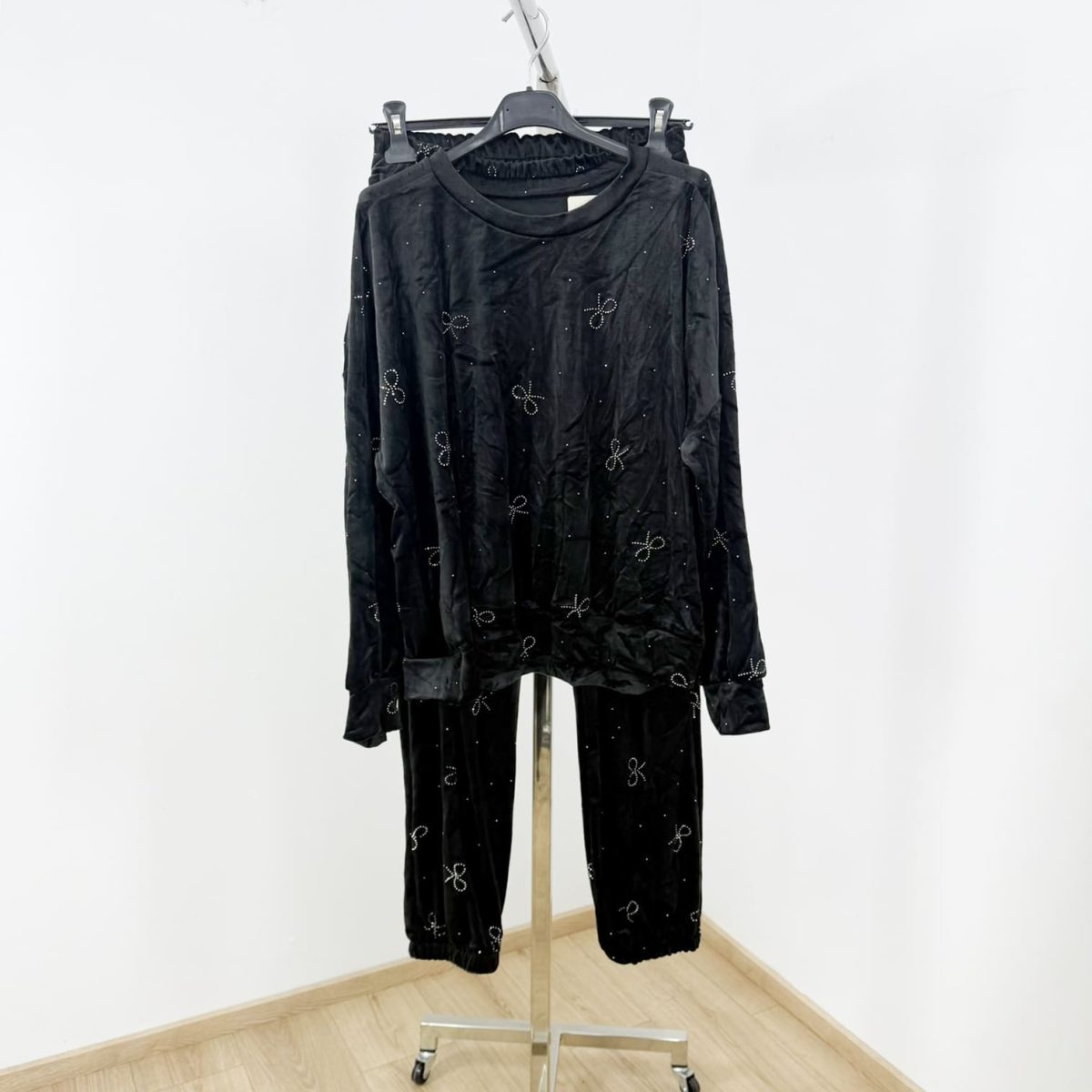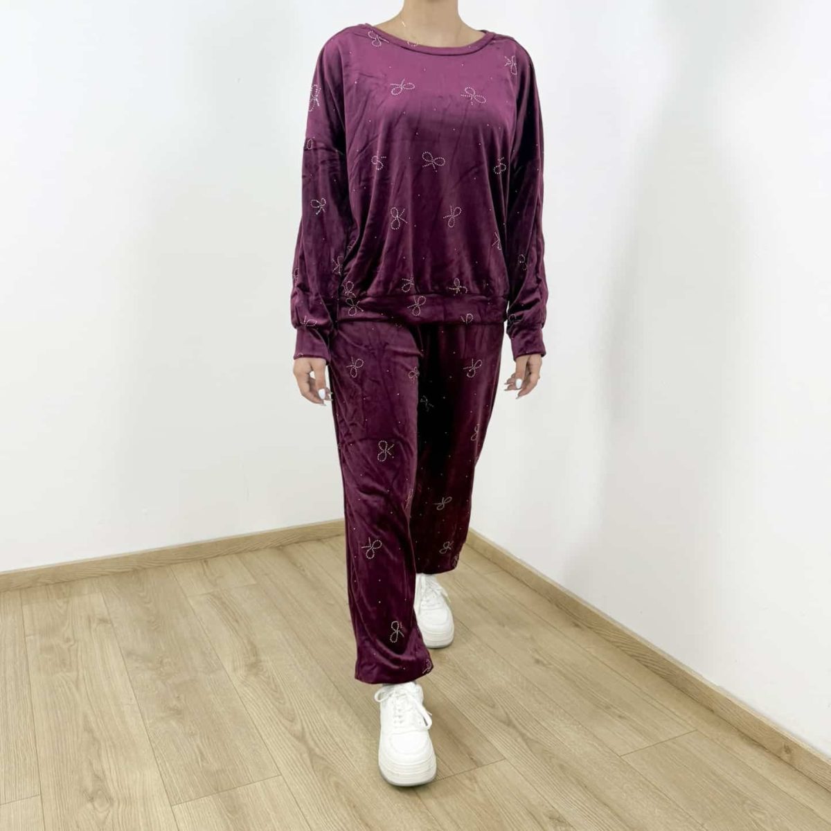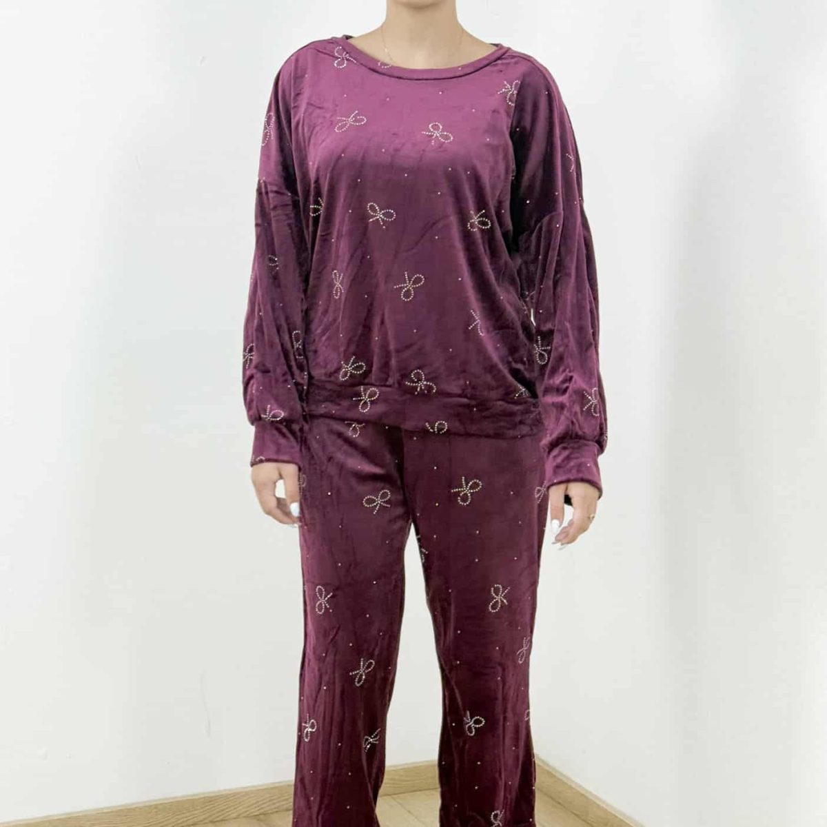Elevate your downtime style with our Velvet Loungewear Set, designed for women who value both comfort and sophistication. Crafted from ultra-soft velvet fabric, this two-piece set is perfect for cozy days at home or casual outings. The delicate rhinestone bow embellishments add a touch of glamour, making this set a chic alternative to ordinary loungewear.