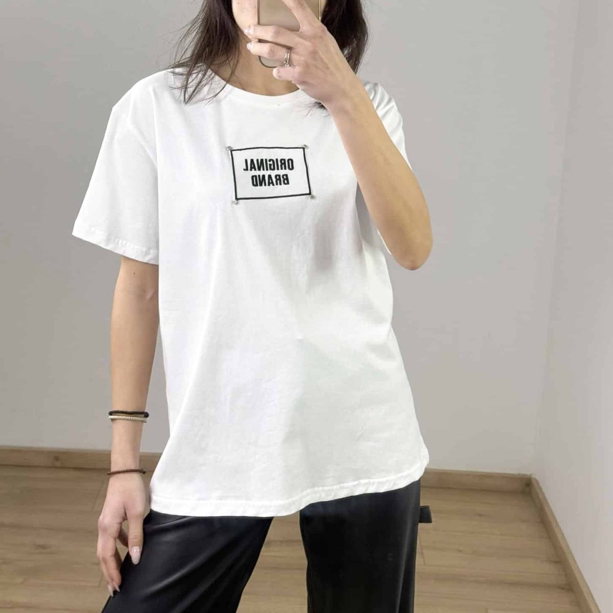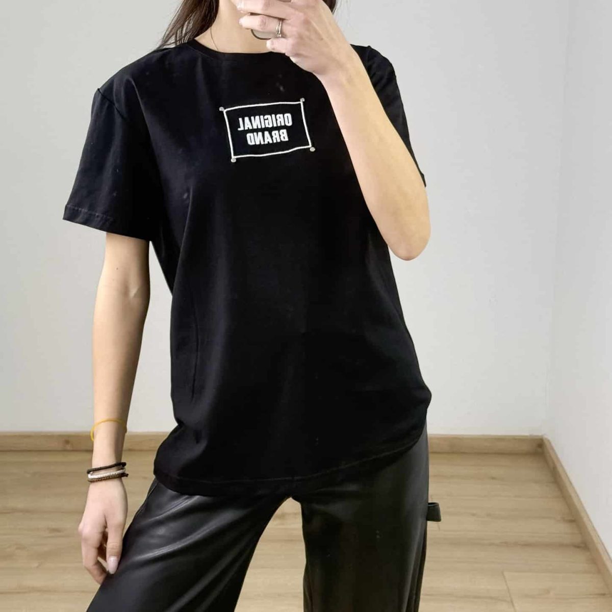 Upgrade your casual style with the Minimalist Brand Patch T-Shirt, a modern essential with a sleek and edgy design. Featuring a bold embroidered “Original Brand” patch, secured with metallic studs for a contemporary touch, this t-shirt stands out while maintaining a minimalist aesthetic. Made from soft, breathable fabric, it offers all-day comfort and a relaxed fit. Available in classic black and white, it’s the perfect versatile piece to pair with jeans, leather pants, or layered under a jacket for a streetwear-inspired look.