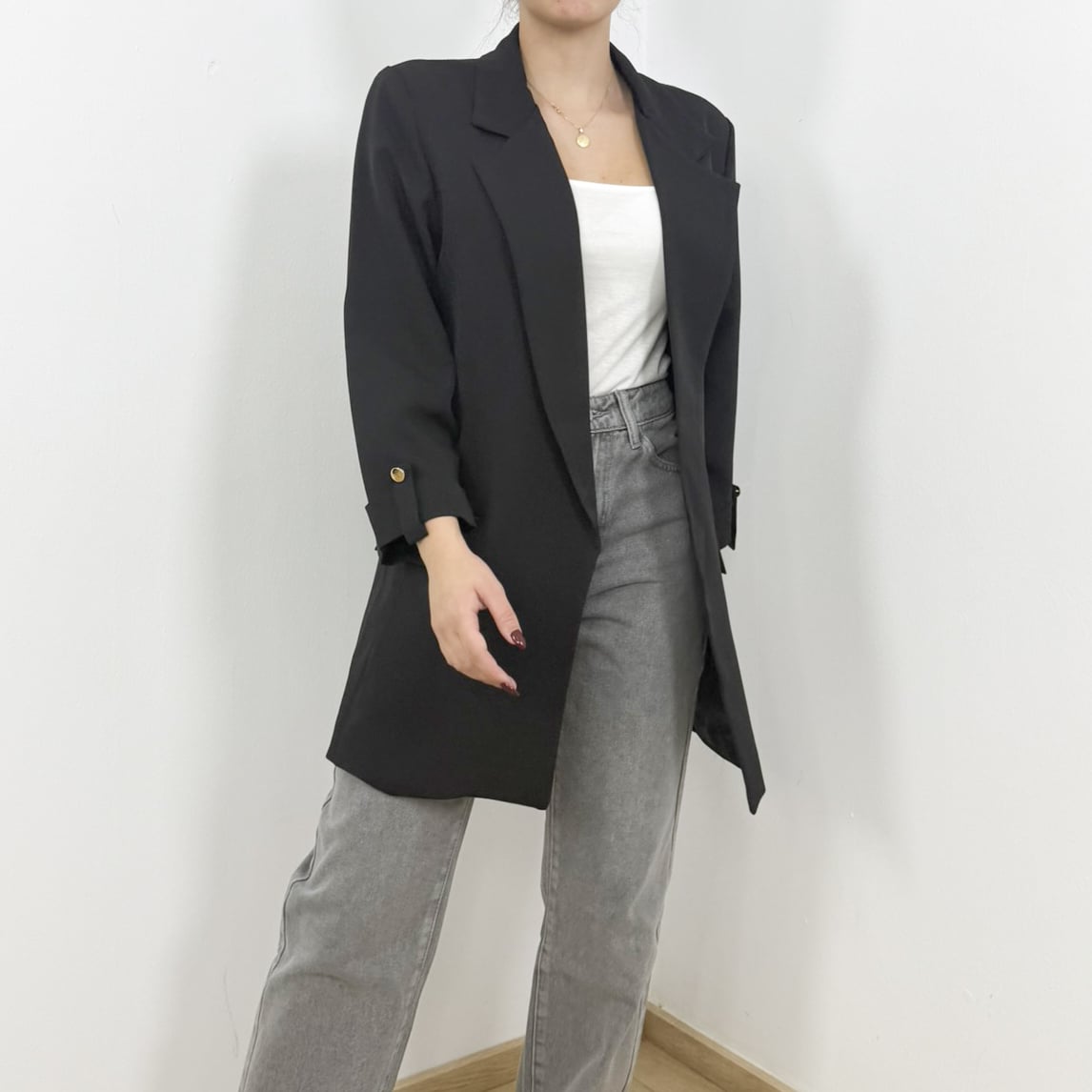 Perfect for both formal and casual settings, the Longline Blazer transitions seamlessly from office meetings to evening outings. Its sleek lapels, refined details, and versatile cut make it the ultimate layering piece. Whether styled over jeans and a tank top for a relaxed look or paired with tailored trousers for a chic power outfit, this blazer brings sophistication to every occasion.