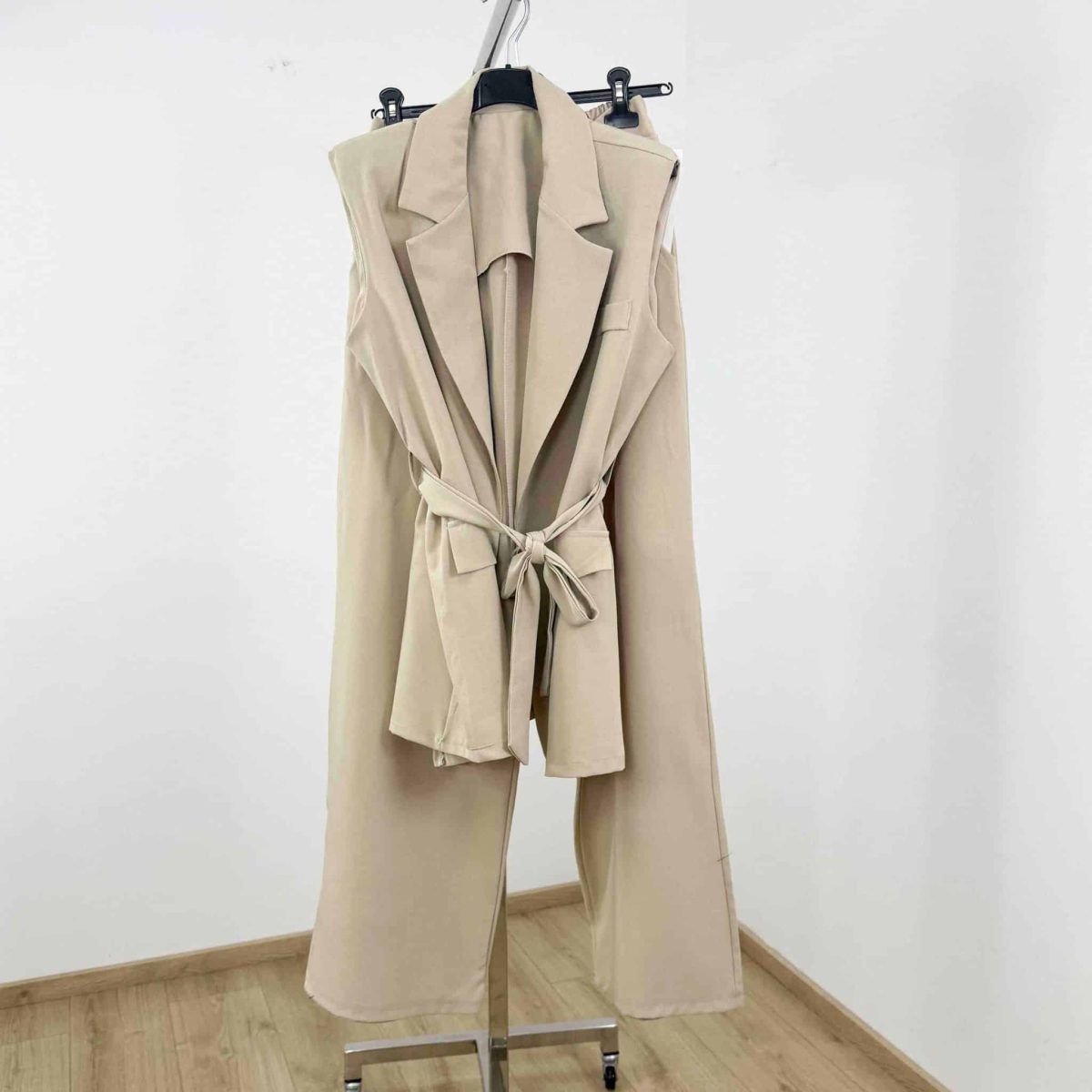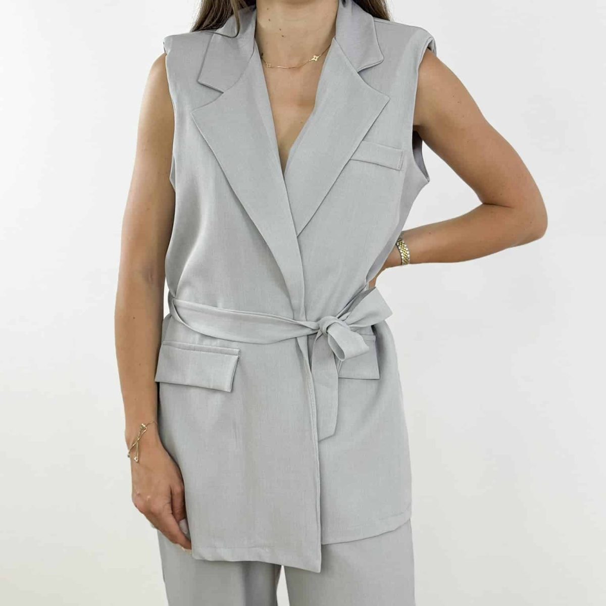 Modern Elegance Sleeveless Belted Blazer Set