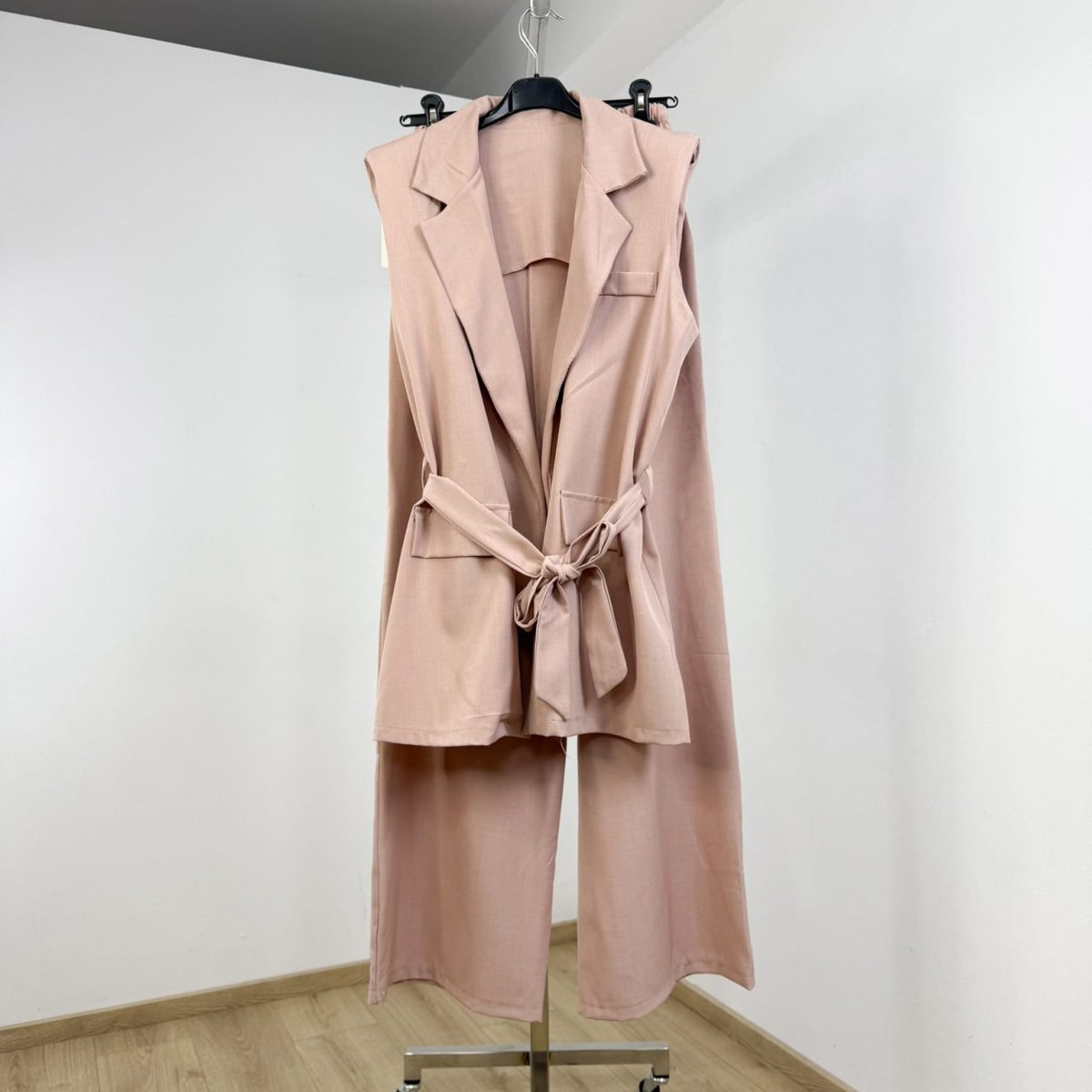 Elevate your everyday look with the Modern Elegance Sleeveless Belted Blazer Set – where structure meets comfort. This ultra-chic two-piece features a tailored sleeveless blazer with a matching wide-leg pant, perfect for both casual sophistication and office-ready polish. Available in soft grey, blush pink, and classic black.