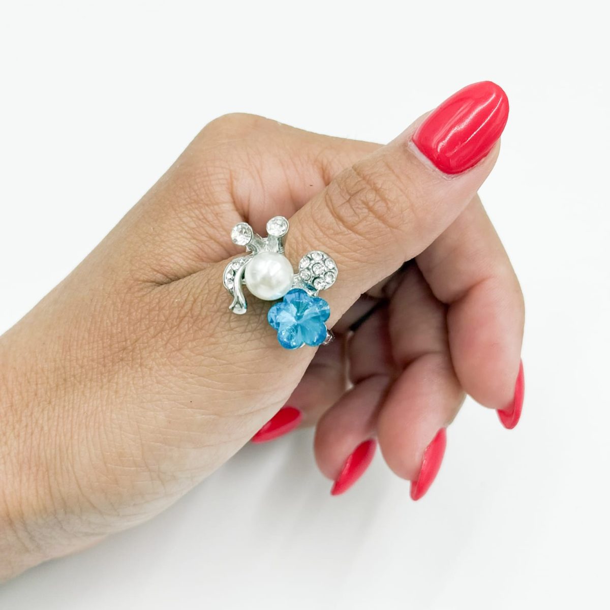 Add a splash of color and elegance to your look with the Ocean Bloom Statement Ring. This eye-catching design features a lustrous faux pearl, sparkling crystal accents, and a vivid blue flower centerpiece that radiates summer charm. Perfect for women who love unique, cheerful, and sophisticated jewelry pieces.