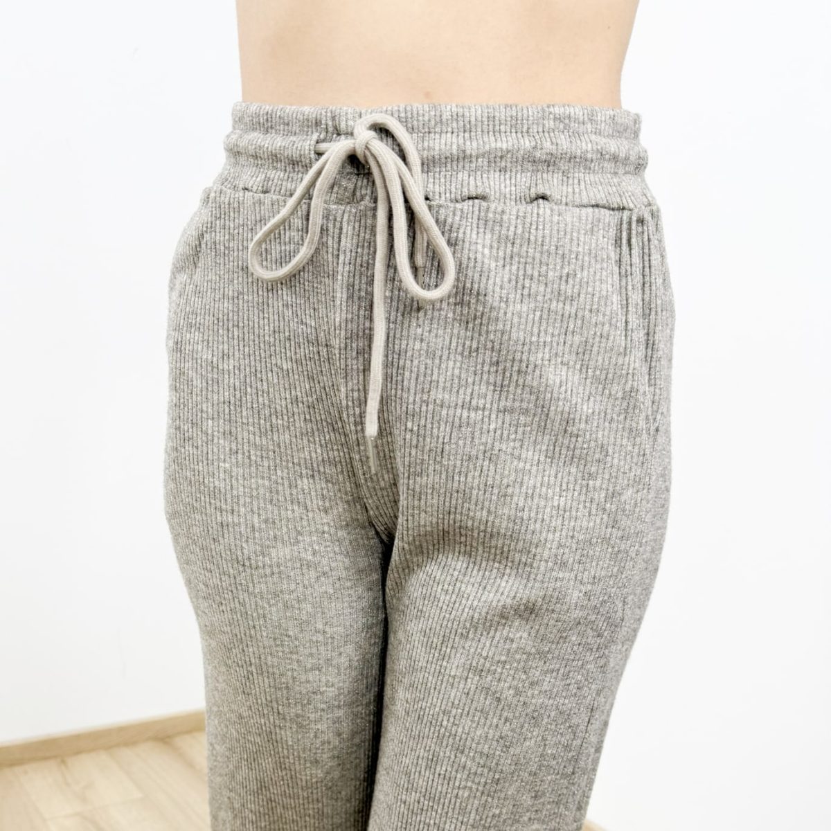 Ribbed Drawstring Straight-Leg Pants