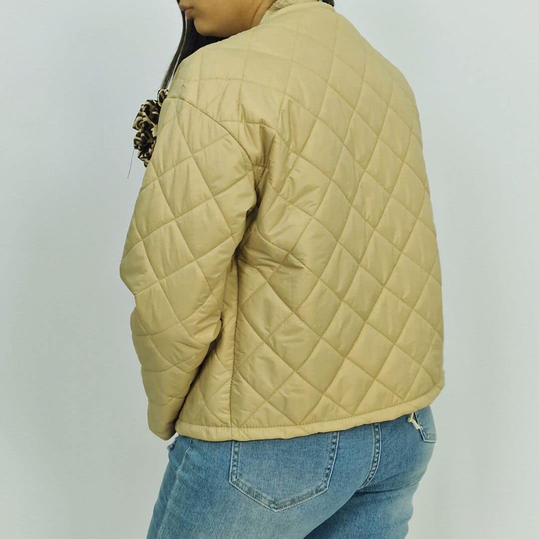 The Rosette Quilted Jacket offers a chic and cozy layering option with its quilted design and elegant rosette detail. This stylish jacket features a detachable animal print flower embellishment on the chest, adding a touch of playfulness to its structured silhouette. The interior lining showcases a matching leopard print for an added hint of boldness. Available in multiple colors, this versatile jacket is perfect for enhancing any casual or semi-formal ensemble.