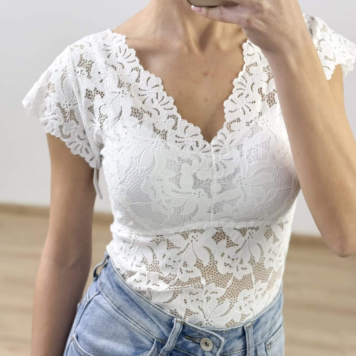 Scalloped V-Neck Lace Top – Romantic Sheer Blouse