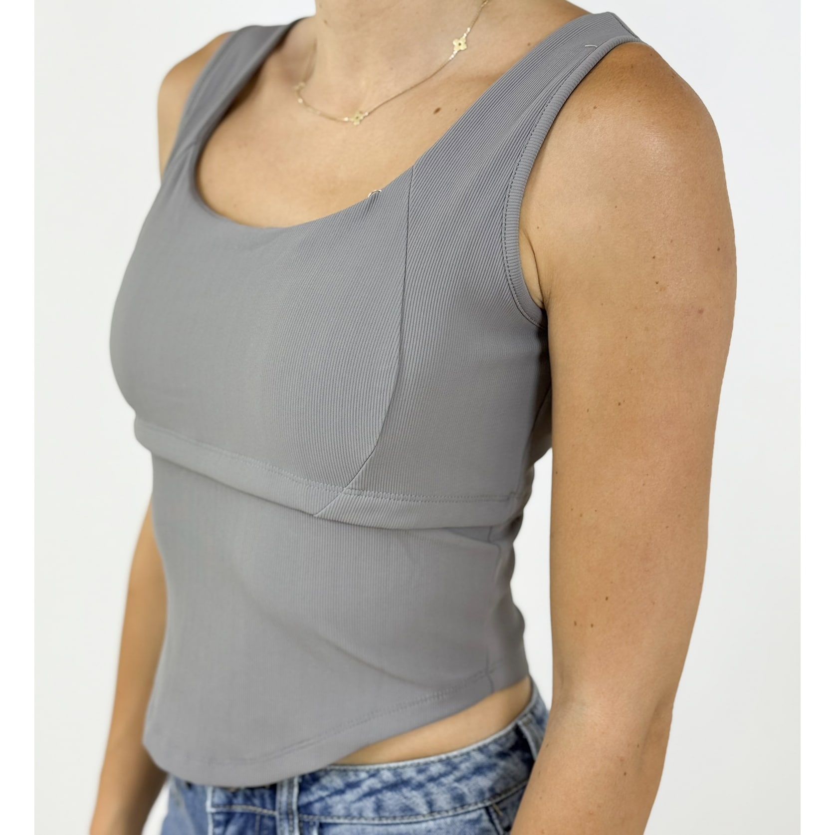 Pair it with high-waisted trousers or a flowy maxi skirt for a figure-flattering summer outfit. Add a cropped blazer or oversized shirt for a touch of city cool.