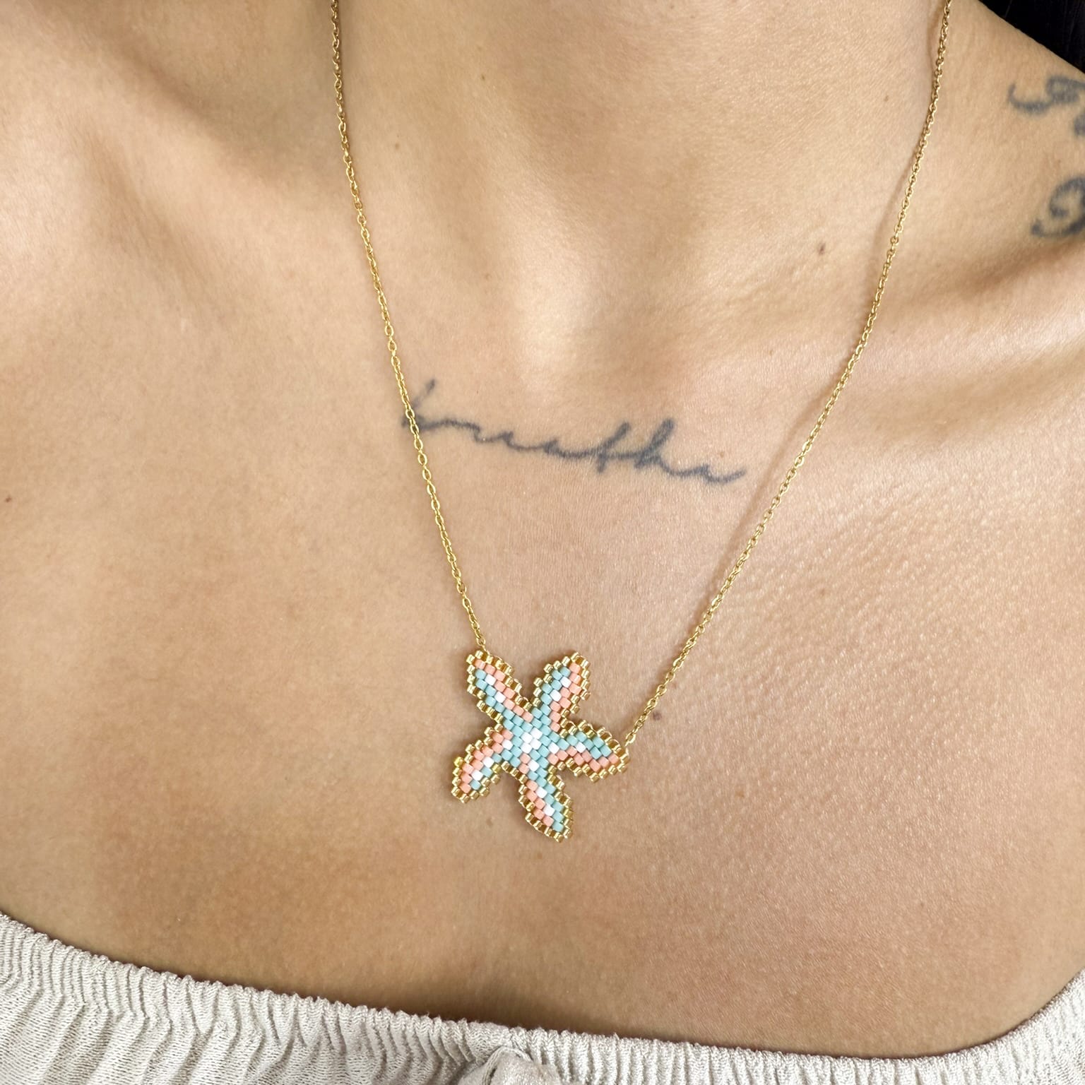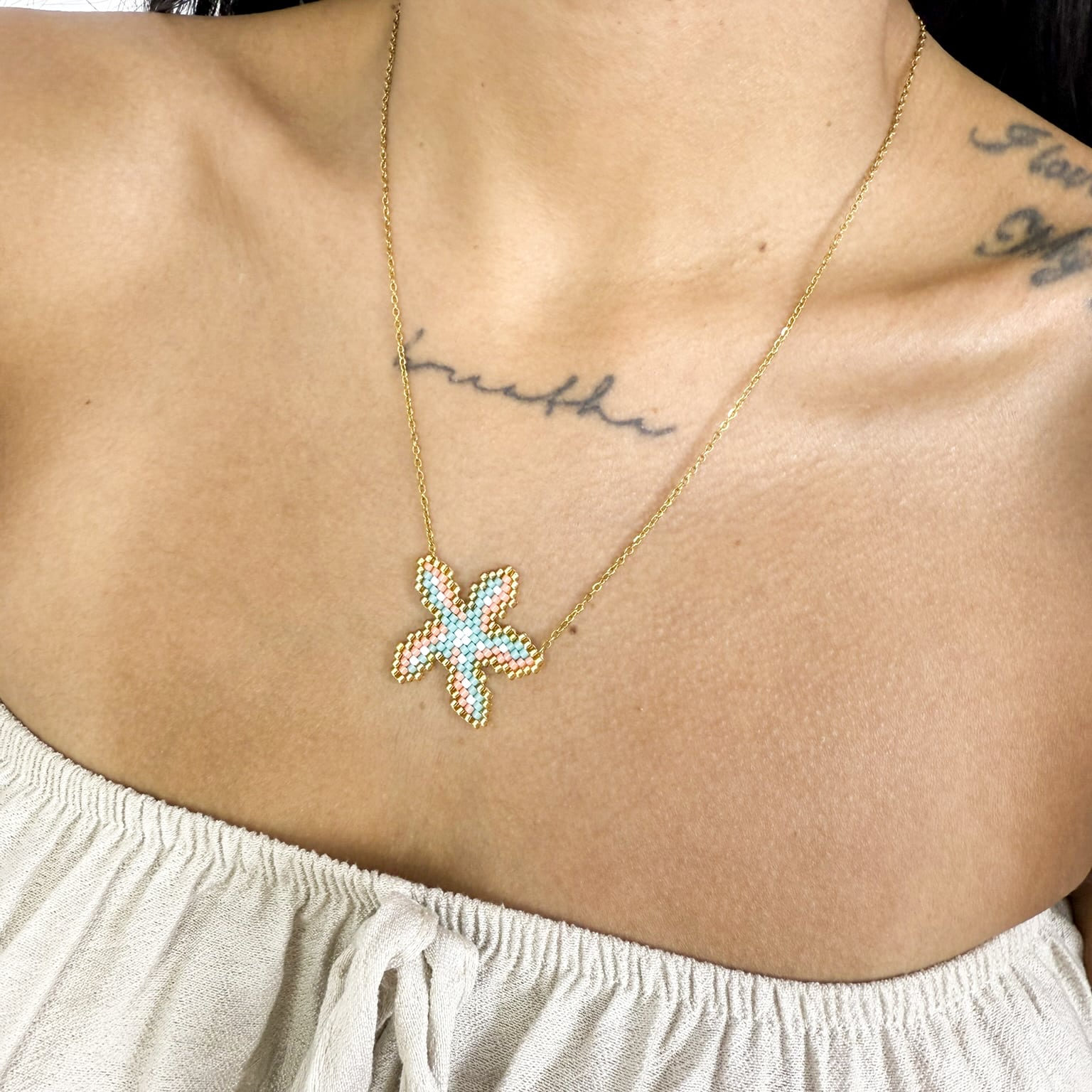 Starfish-inspired beaded pendant with multicolor detailing